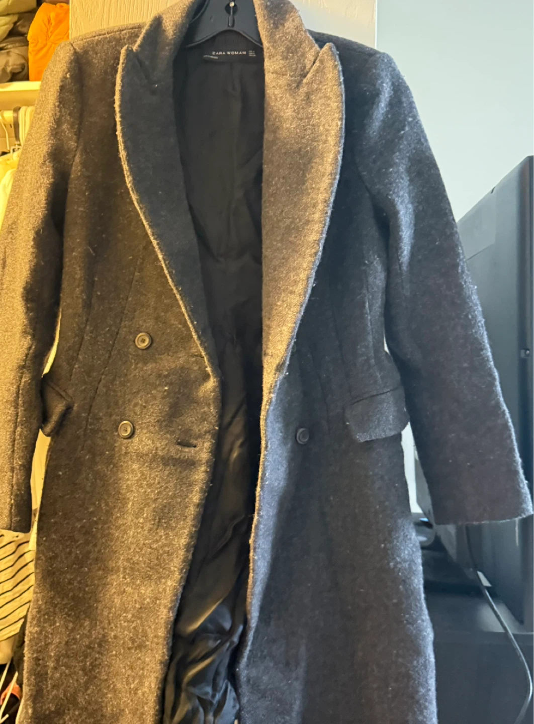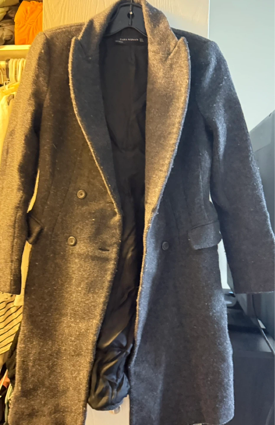 Selling a Zara Woman coat in a lovely grey colour! It is a wool blend. Perfect for layering during the colder months. It's in great condition and ready for a new home