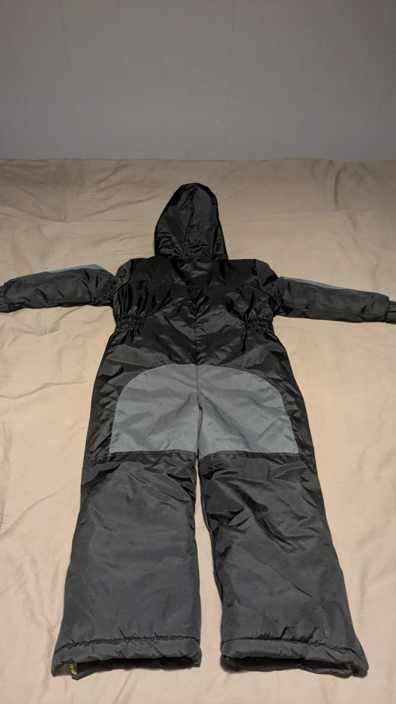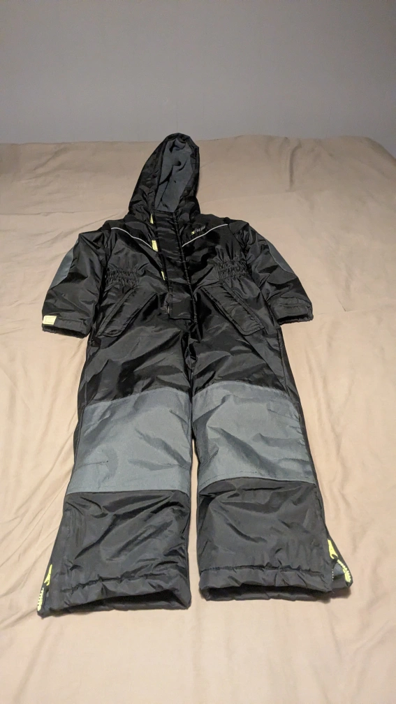 Here's a snowsuit from Xtreme Outfitters, perfect for keeping your little one warm this winter! It's black and gray, and size 4T. Great for playing in the snow or just staying cozy on cold days