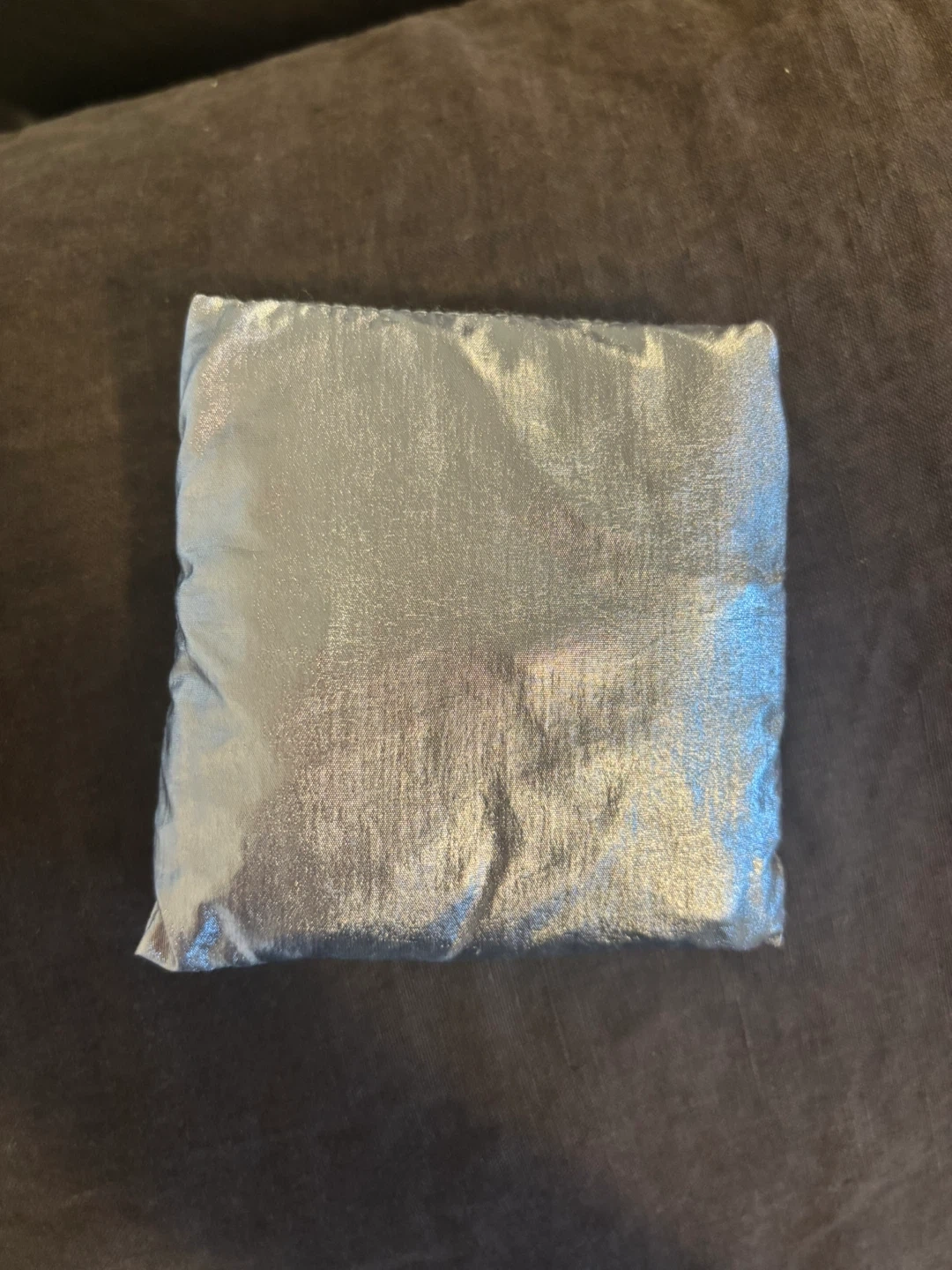 BAGGU reusable shopping bag in a shiny blue silver colour! It's lightweight and can be folded up easily for convenient storage. Perfect for groceries or everyday use!