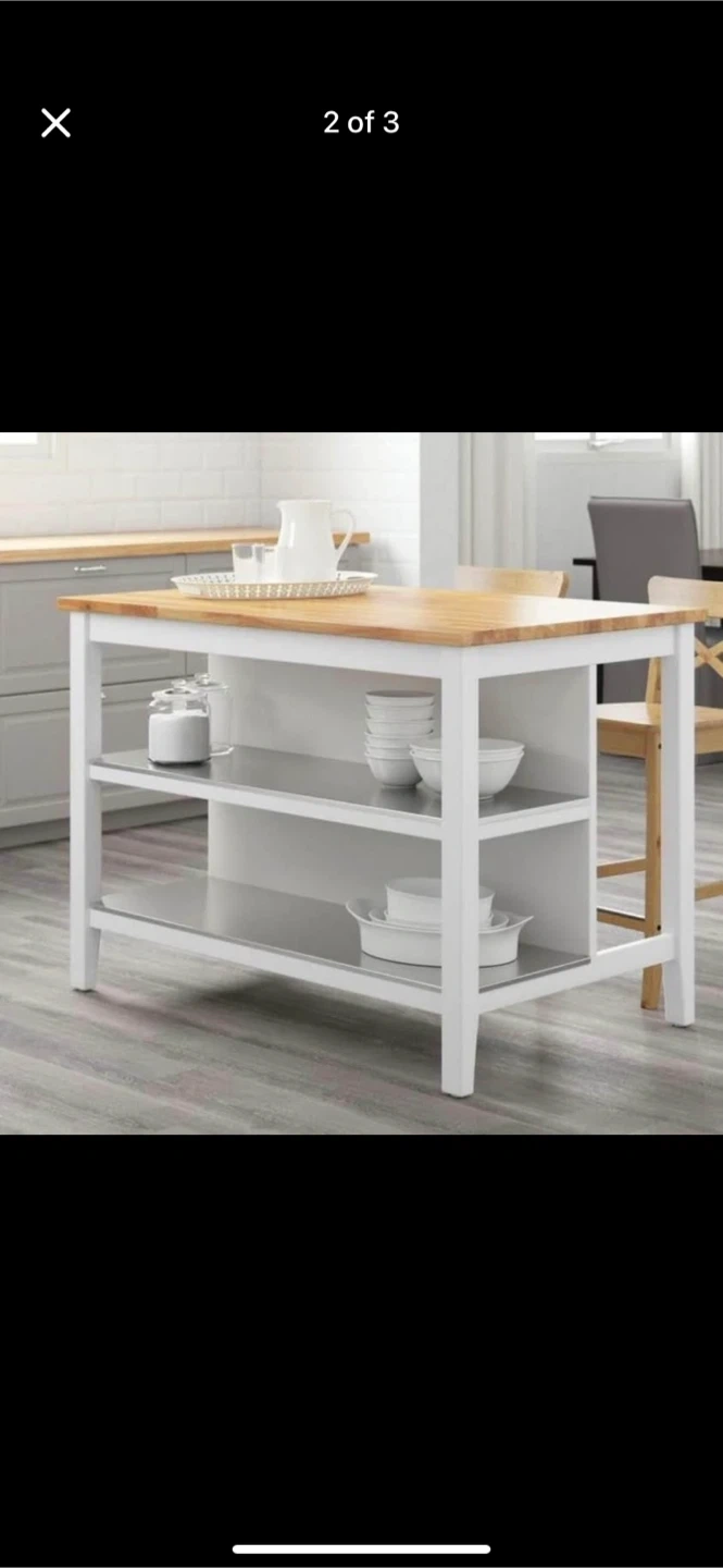 Selling a gently used IKEA Stenstorp kitchen island. It's in great shape and perfect for adding extra counter space and storage to your kitchen. Features a solid wood countertop and two shelves for storing your kitchen essentials.