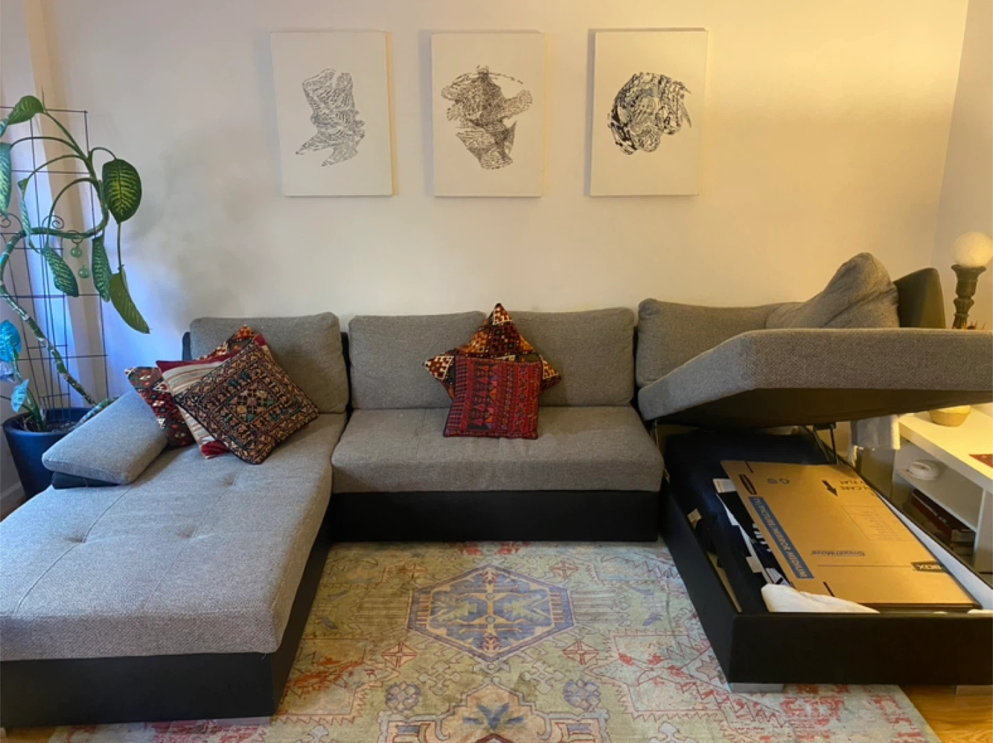 16Selling an IKEA Friheten sectional sofa with a pull-out bed and storage! It's in great condition and perfect for small spaces or hosting guests. The sofa is gray and features a chaise lounge for extra comfort. It also has a built-in storage compartment under the chaise to keep blankets and pillows organized