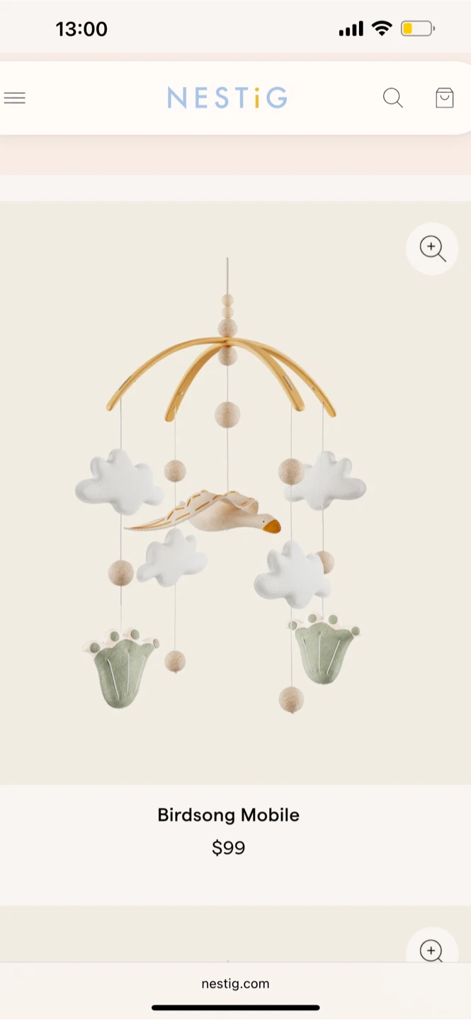 Selling a NESTIG Birdsong Mobile, designed for sweet dreams! It comes with the mobile attachment arm as well. The mobile features clouds and a stork. Comes with the original box