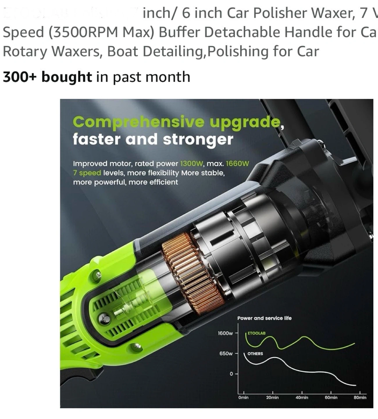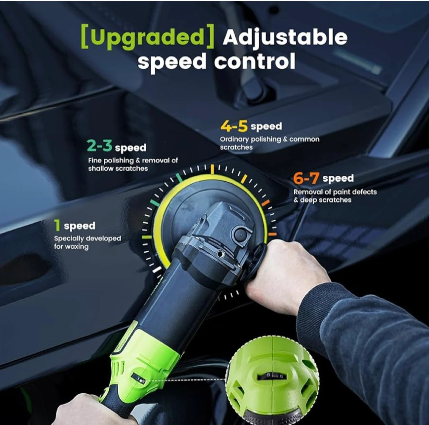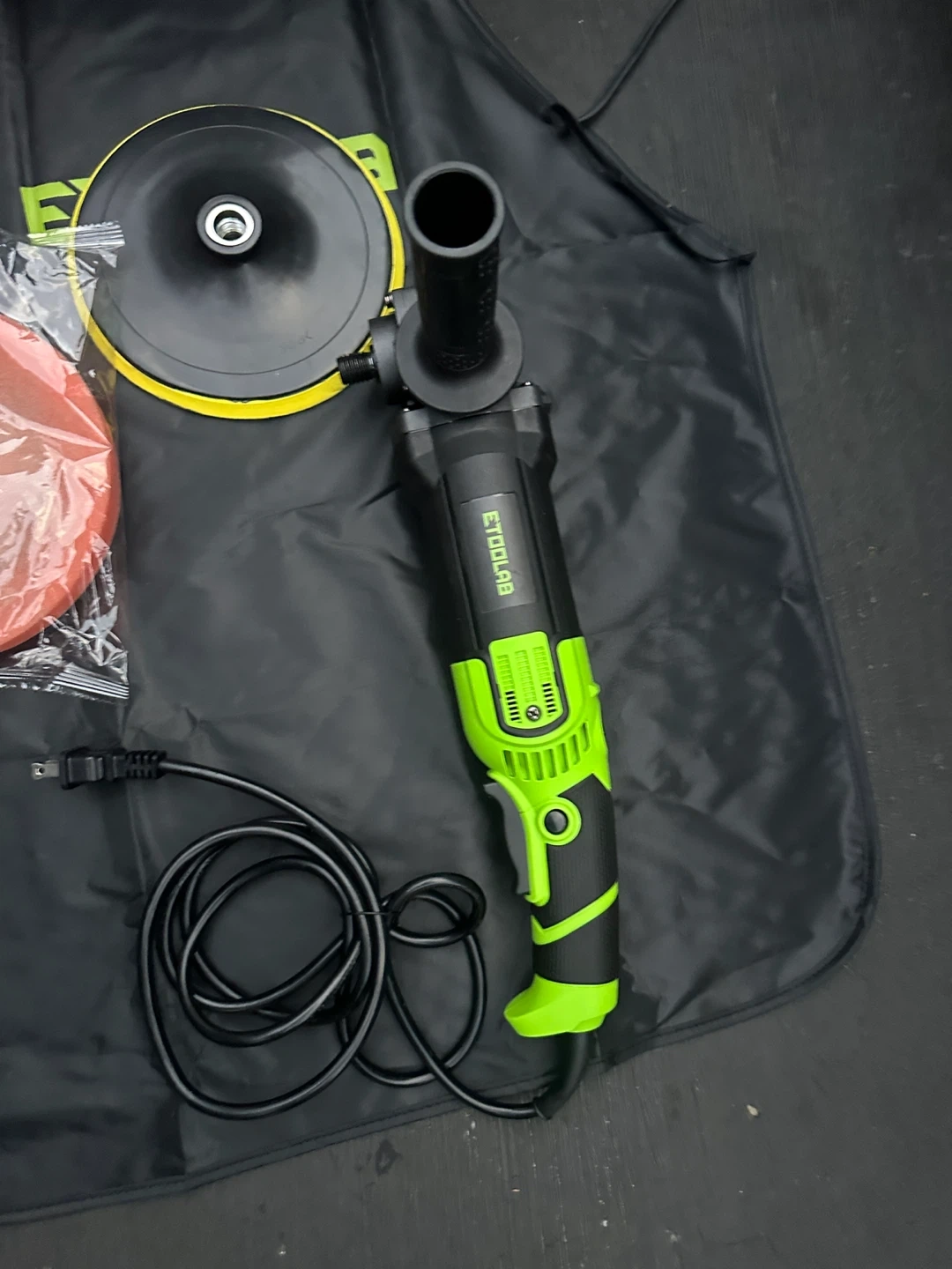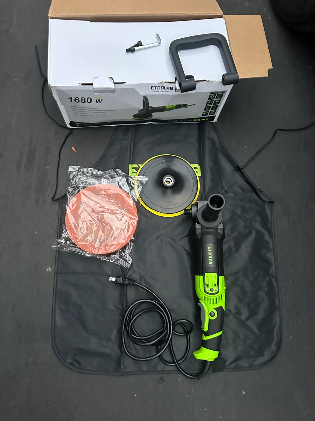 15Selling an ETOOLAB car polisher waxer. It's a 6-inch model with adjustable speed control. - Includes accessories such as polishing pads and a handle - Comes with the original box - Features a powerful 1680W motor for effective polishing - Designed for removing paint defects and deep scratches