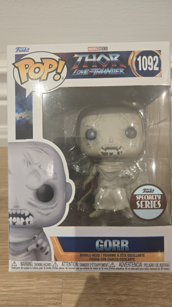 Selling a Funko Pop! figure of Gorr from Marvel's Thor: Love and Thunder. This is number 1092 in the Funko Pop! series. It's a bobble-head figure and comes in its original box in perfect condition.