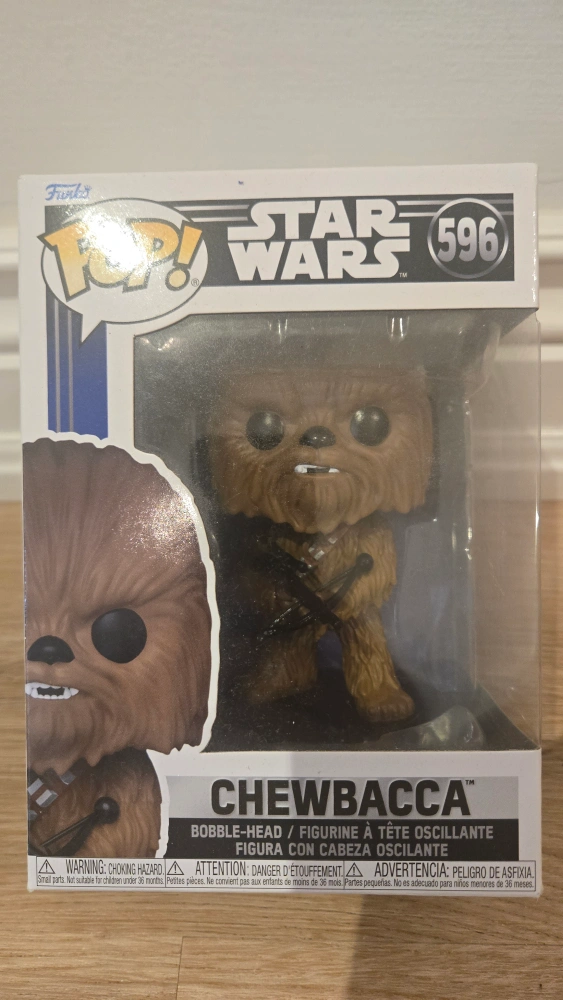 Selling a Funko Pop! Star Wars Chewbacca bobble-head figure, number 596. It comes in its original box which is in perfect condition.