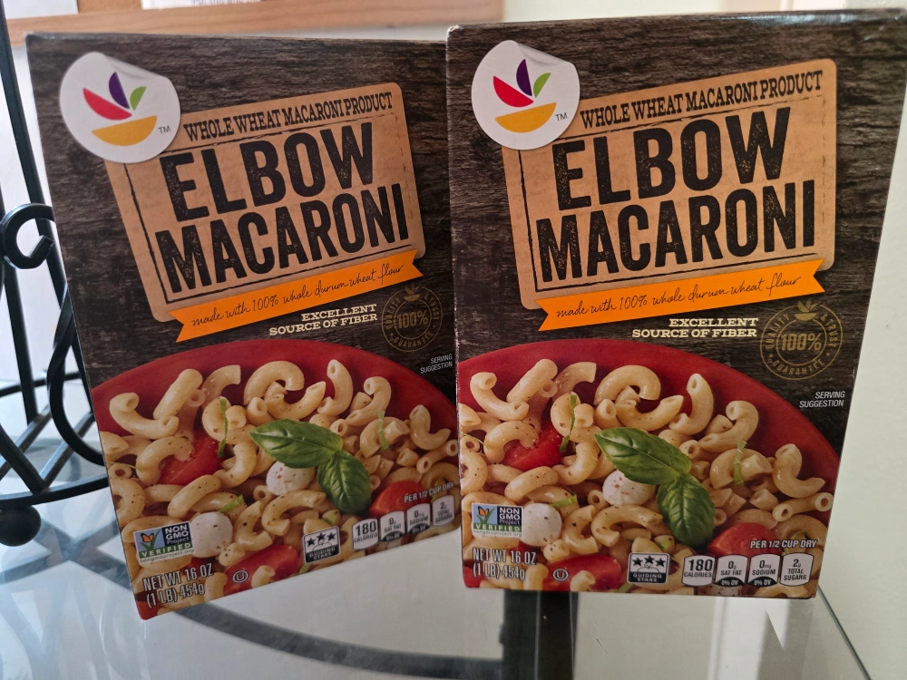 Selling two boxes of elbow macaroni. They are an excellent source of fiber and made with 100% whole durum wheat flour. The expiration date is July 27, 2027 #freecycle