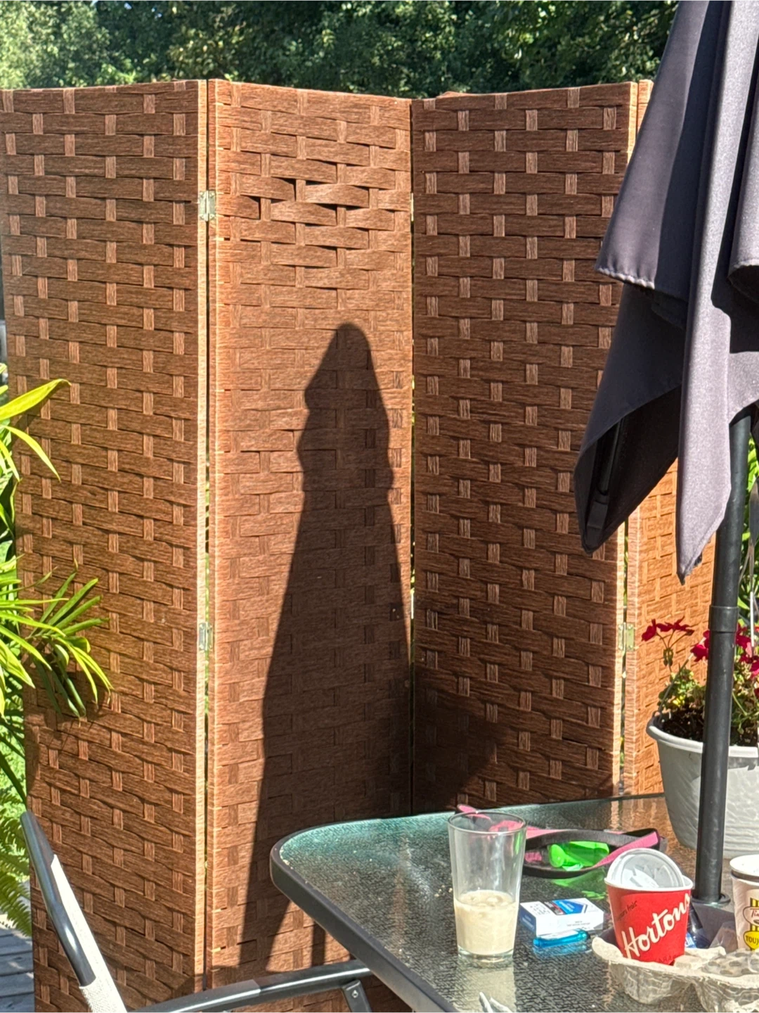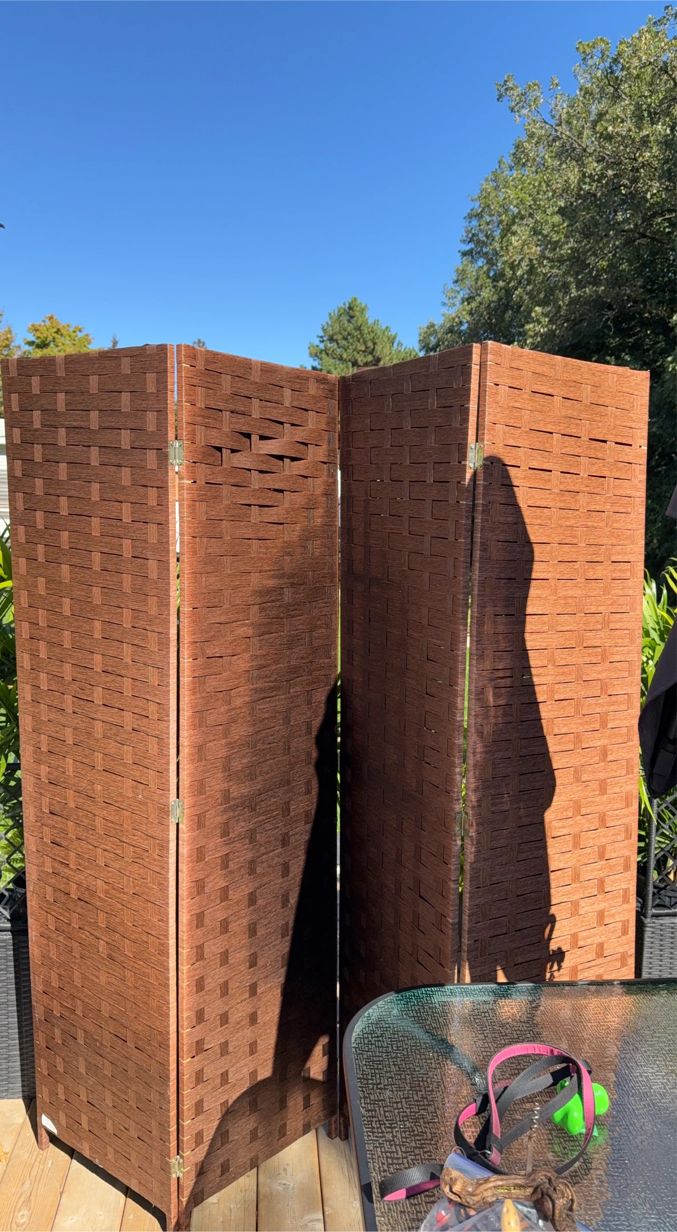 This is a medium brown woven room divider, perfect for creating some privacy or dividing a space in your home or outside living space it won’t faint or chip in the sun or rain. New condition and ready to add to your decor and create a little privacy if that’s what you need it for