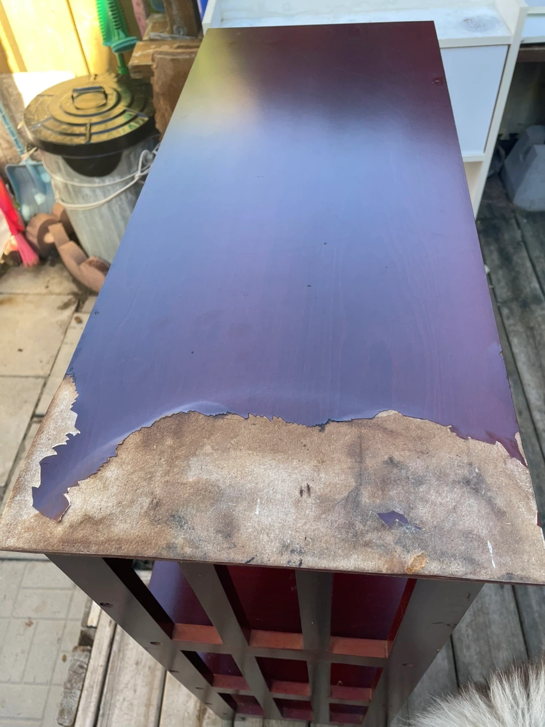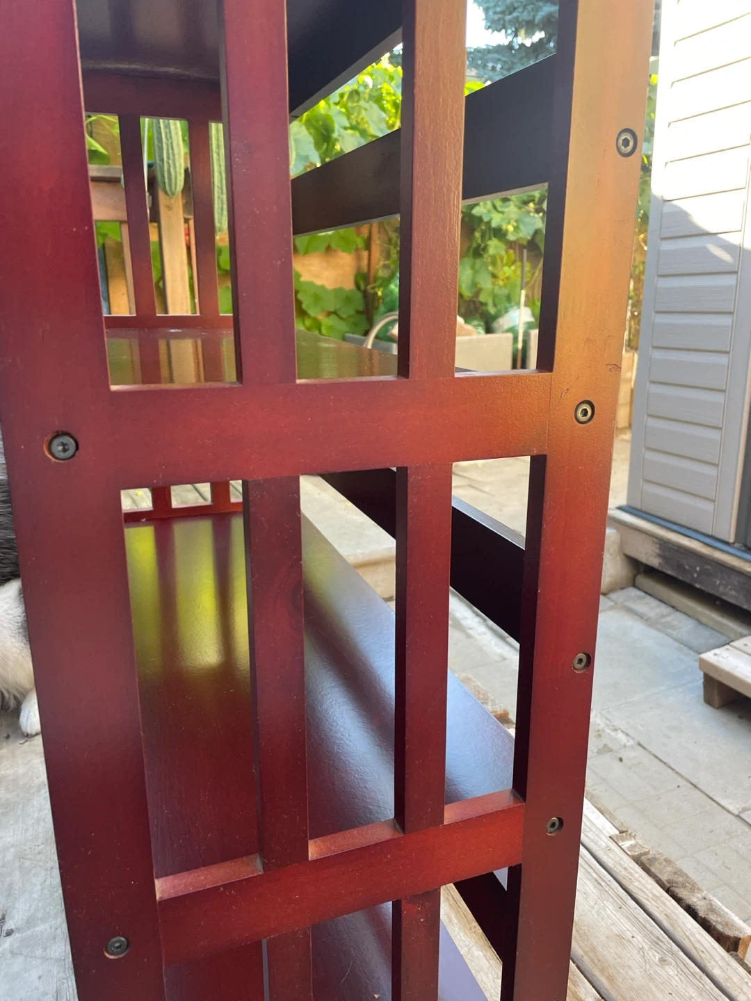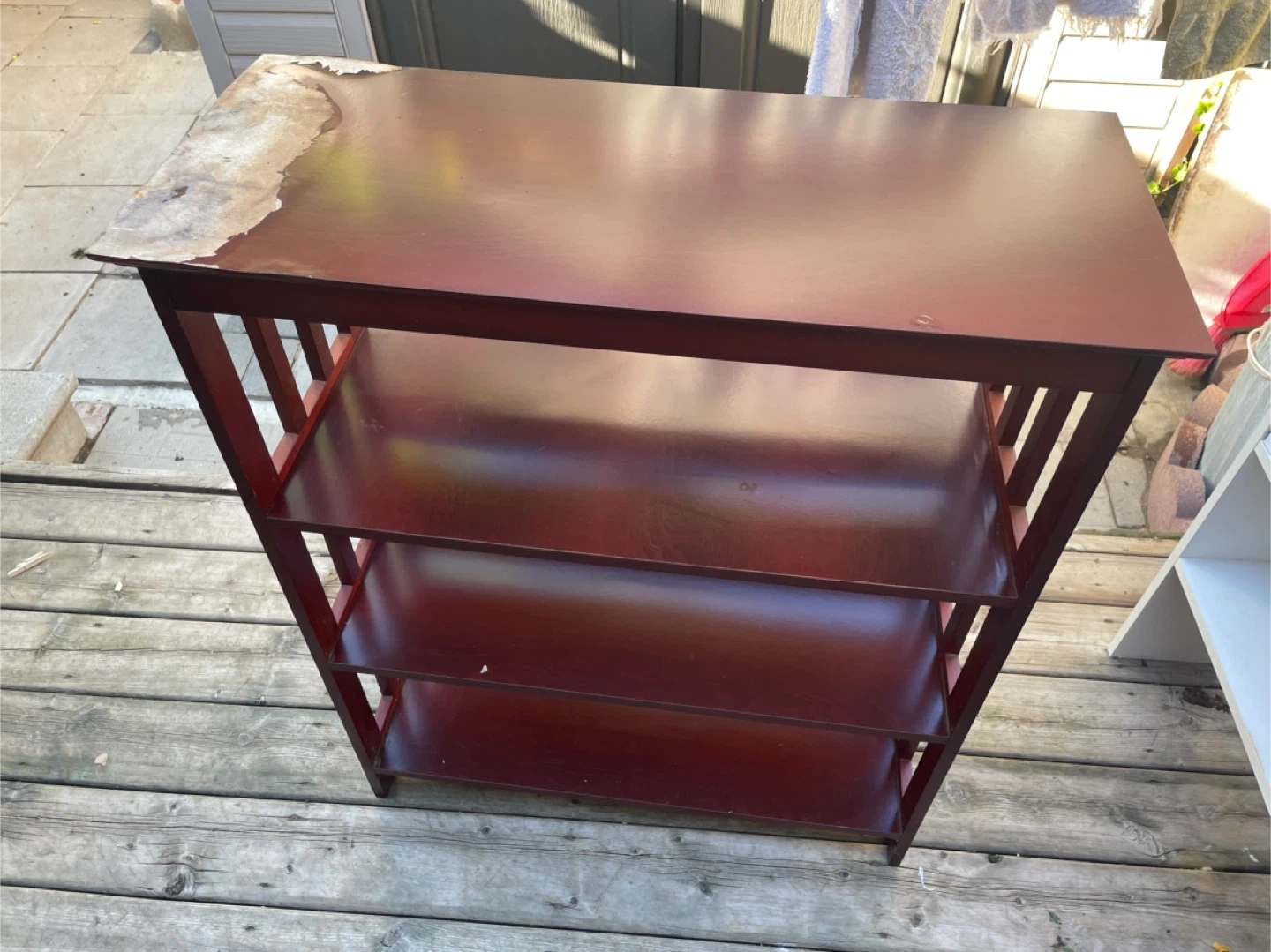 Selling a Brown-coloured wooden Shelf. It has three shelves and a sturdy frame. Top just needs a repaint. No wobbling and nothing hindering its usage.