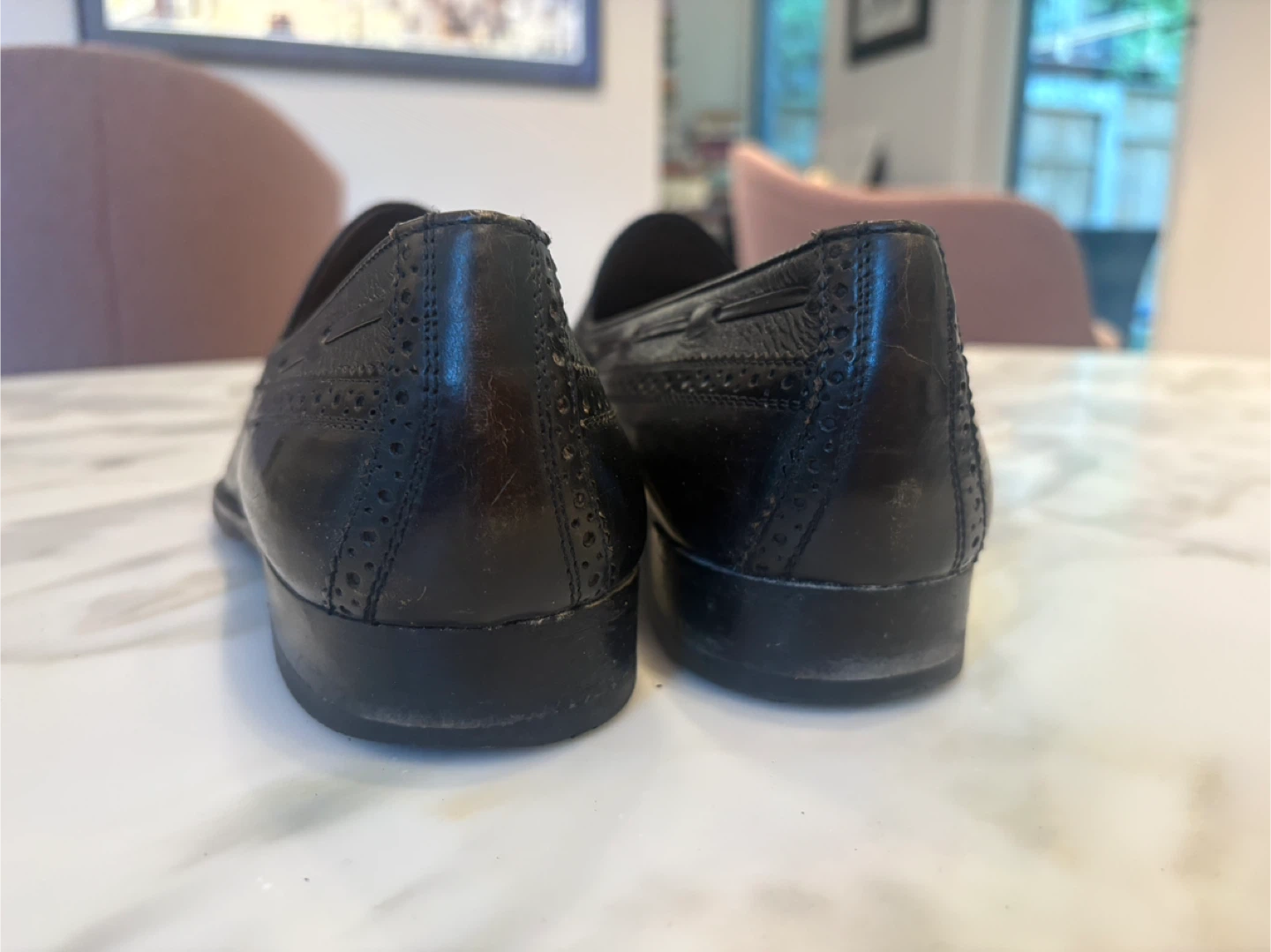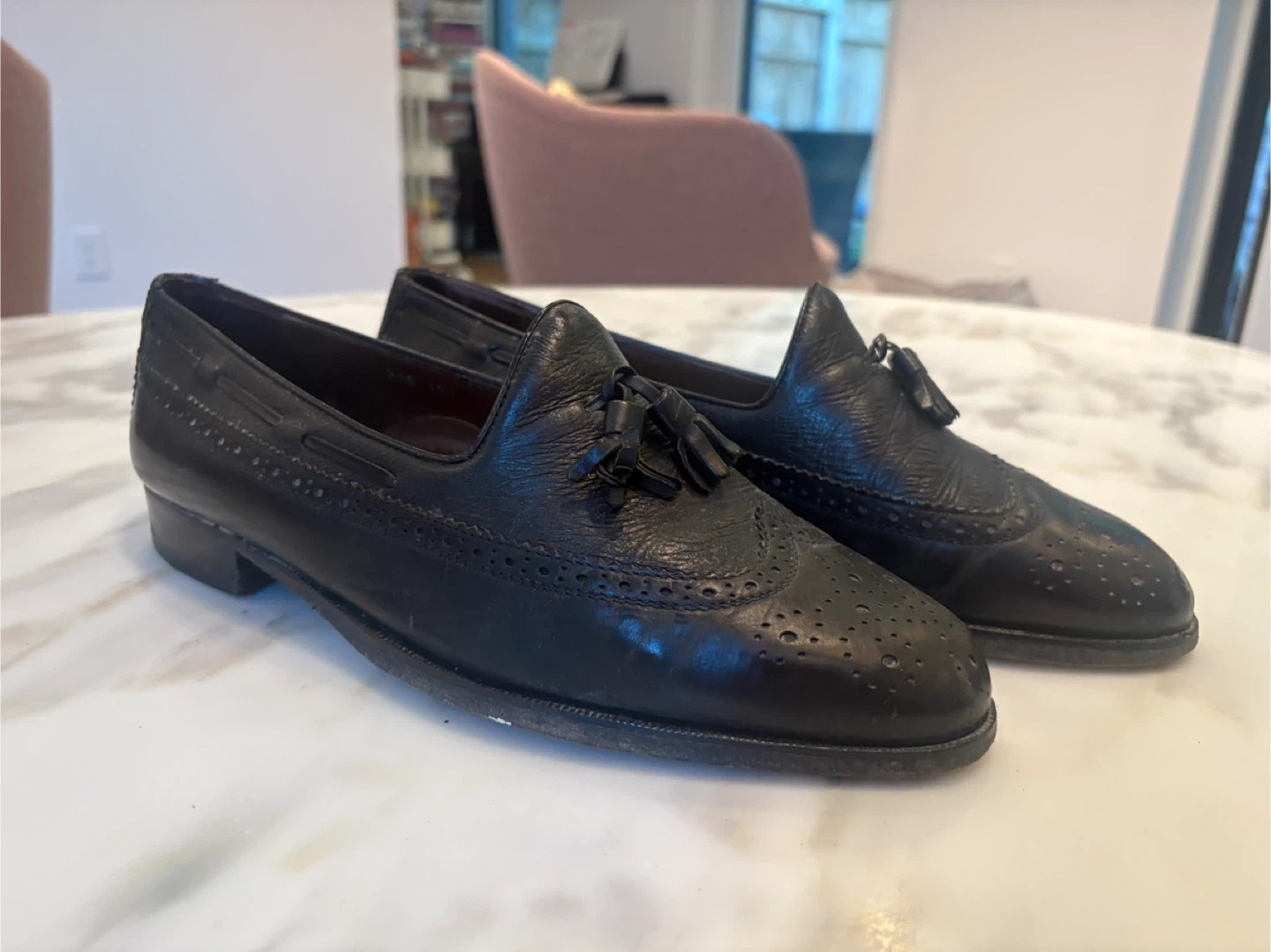 Classic, Bally black leather tassel loafers. Incredible quality. Resoled already for durability. Size 10.