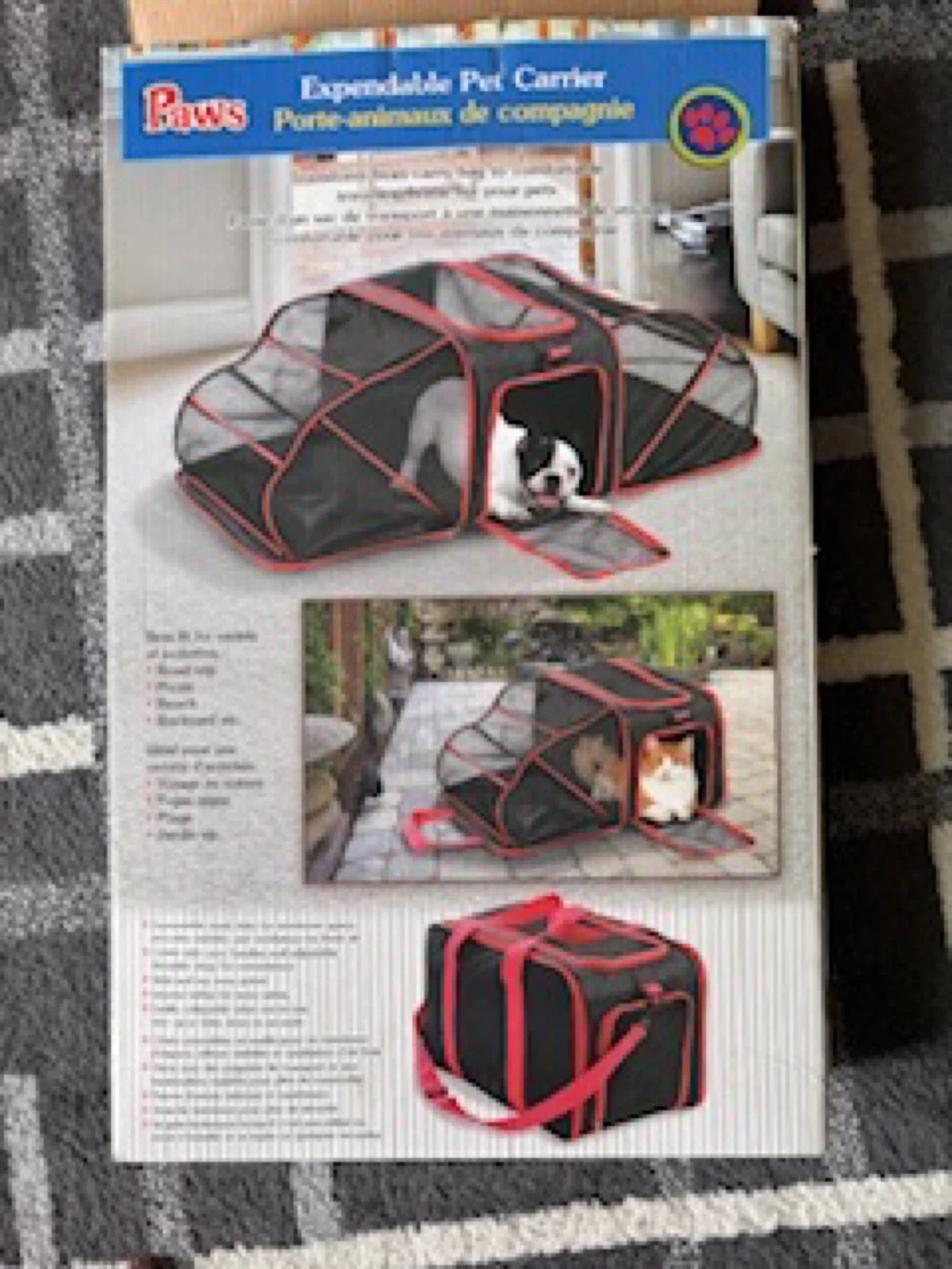 Looking to sell my Paws Expandable Pet Carrier. It's great for road trips, picnics, or even just hanging out in the backyard! The mesh sides provide maximum space and ventilation, and it comes with carry handles and an adjustable shoulder strap for convenience. It's also easily collapsible when not in use, setting up or folding down in seconds. The dimensions are 20" (L) x 10" (W) x 12" (H) when folded and 35" (W) when fully extended