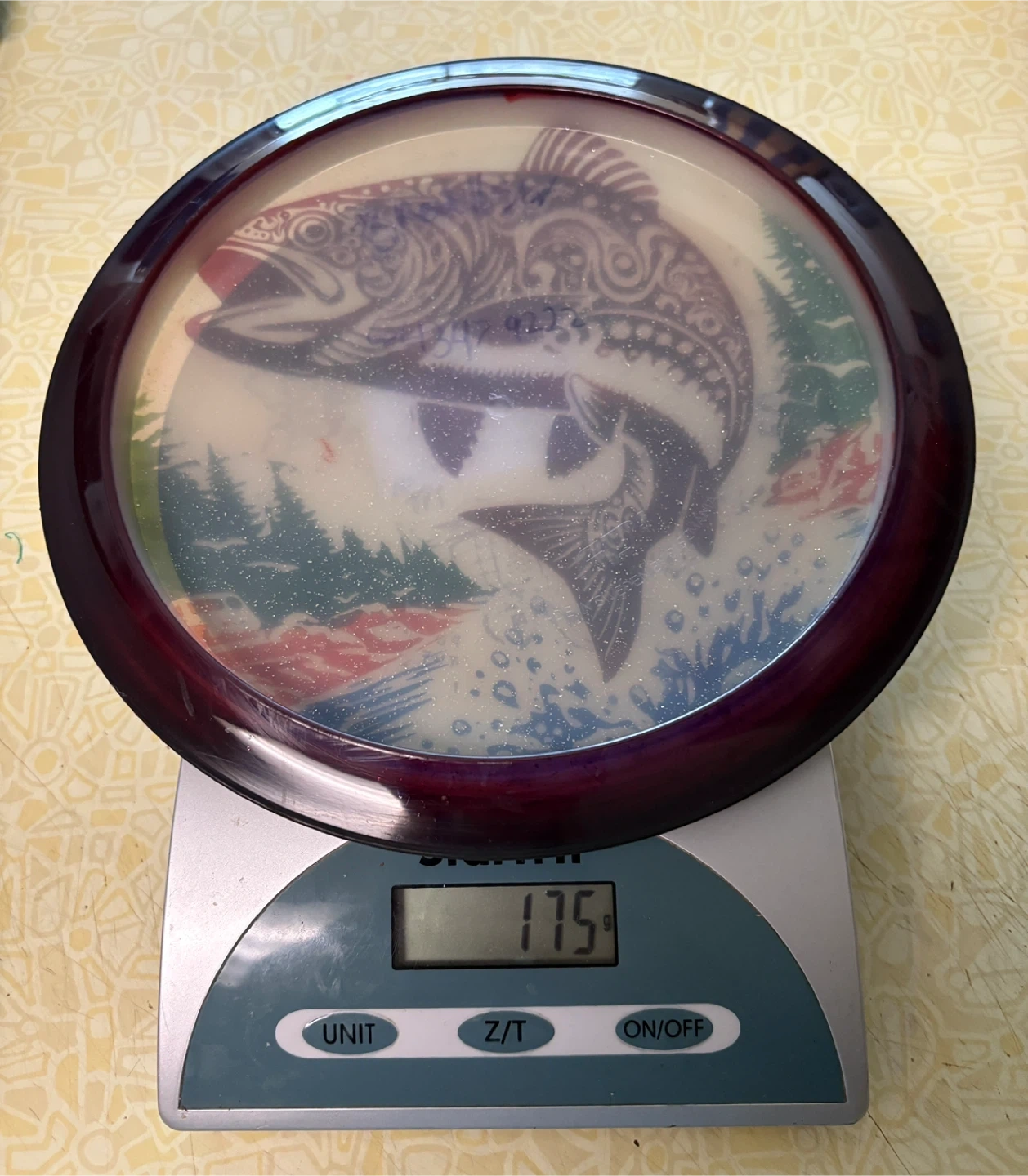I found this disc in the lake at Queen Elizabeth and the owner didn’t want it back. I dyed it and offered it to him again. He still didn’t want it, so I’m selling it. It’s probably a 7/10 on the sleepy scale, just because of a few scrapes on the rim and the lake smell that is still with the disc. I trust that smell will fade as time goes by.