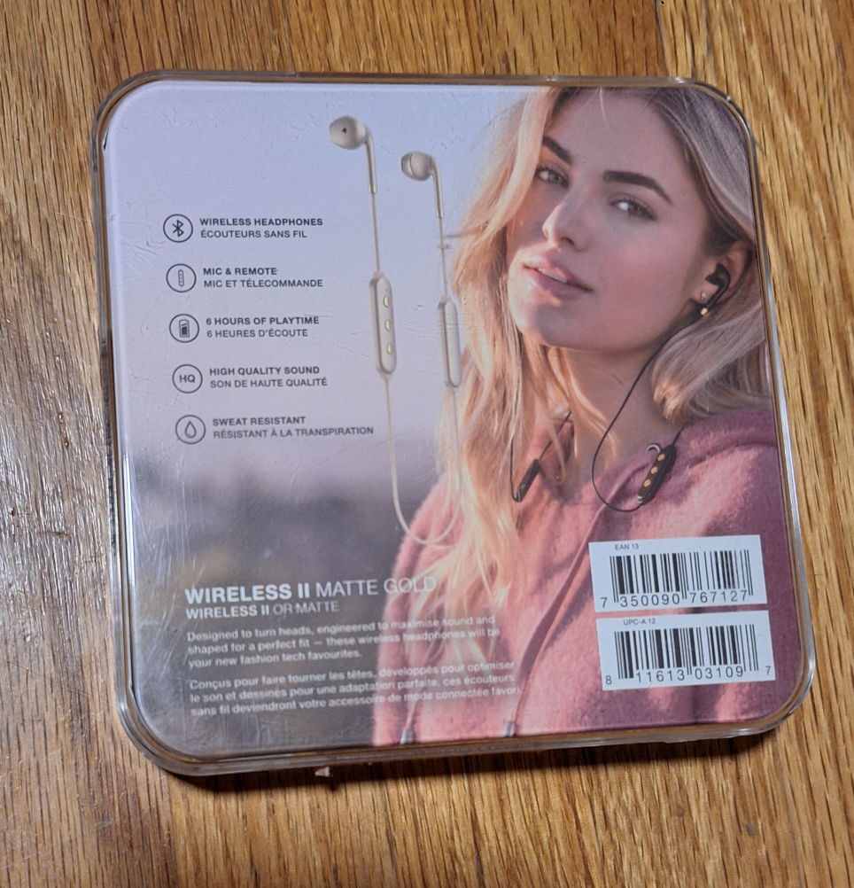 Selling a pair of Happy Plugs Wireless II Matte Gold headphones. They are sweat resistant and provide high quality sound. You'll get up to 6 hours of playtime. Designed to turn heads and engineered for a perfect fit, these wireless headphones will be your new fashion tech favourites
