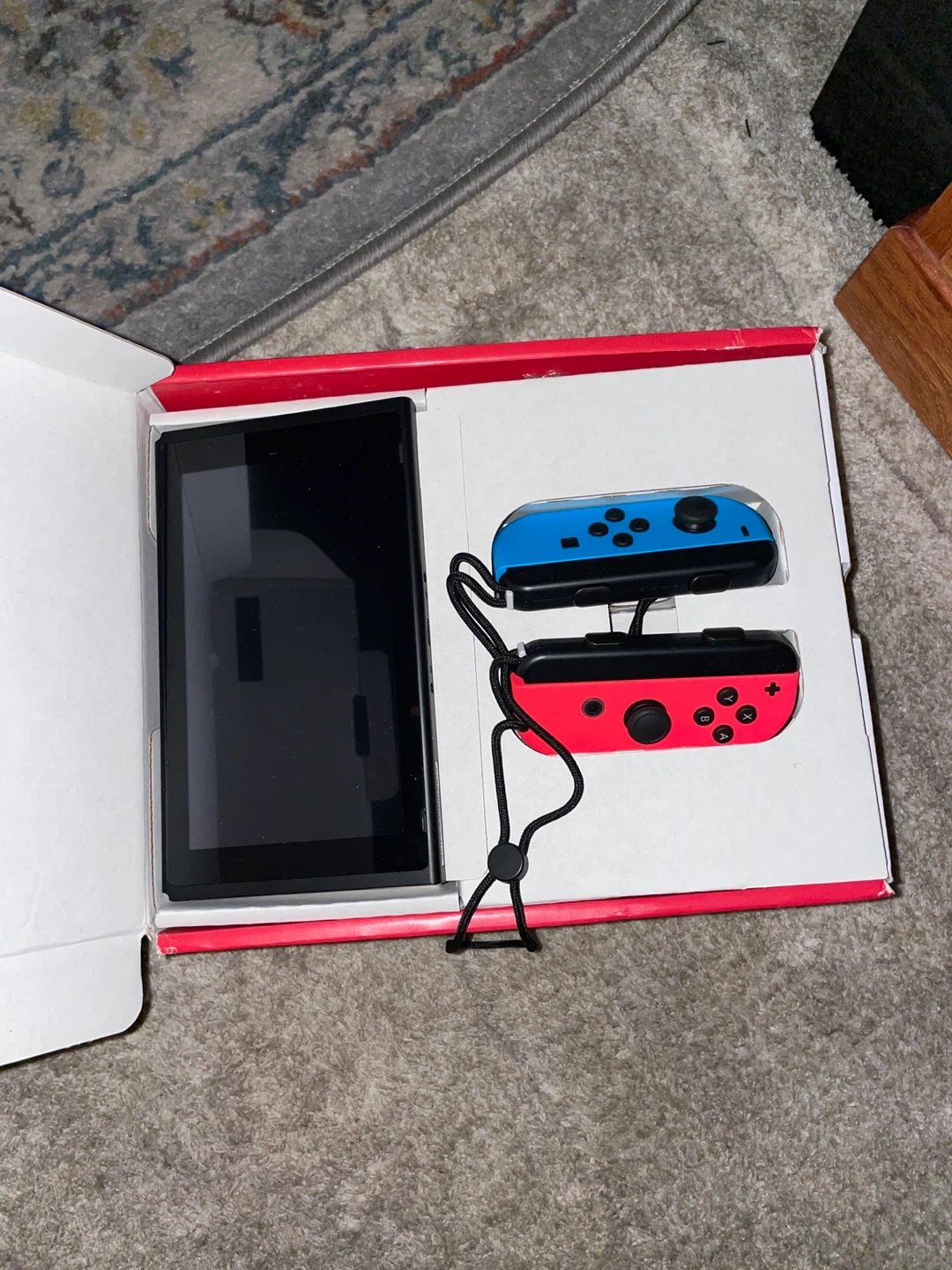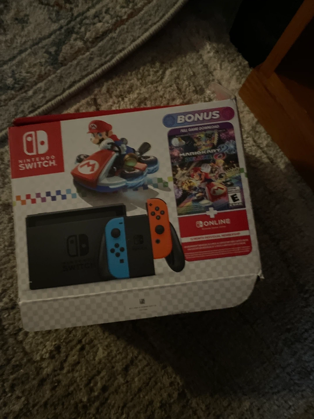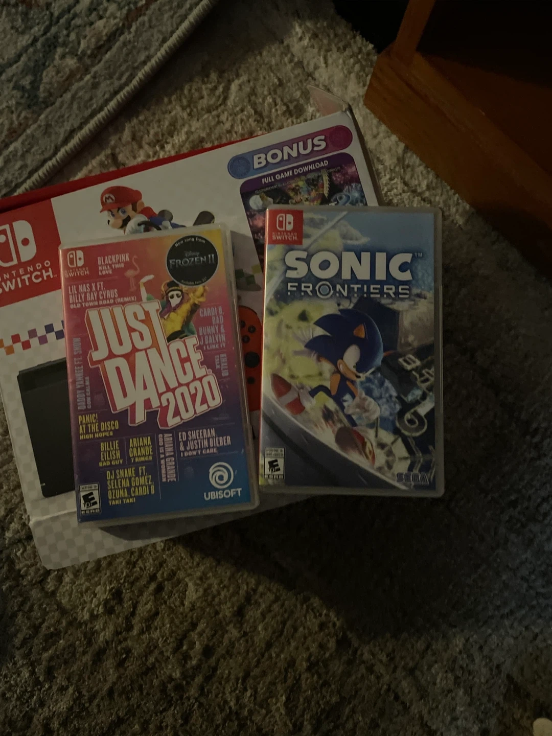Selling a Nintendo Switch console that's in great condition! It comes with the box and includes the Mario Kart 8 full game download. Also including Just Dance 2020 and Sonic Frontiers games!