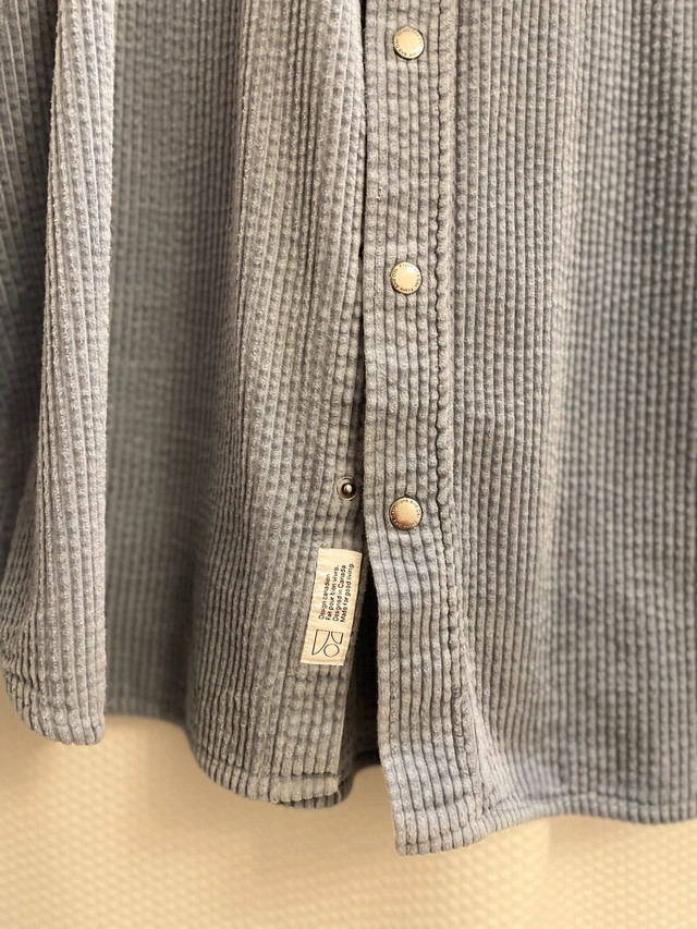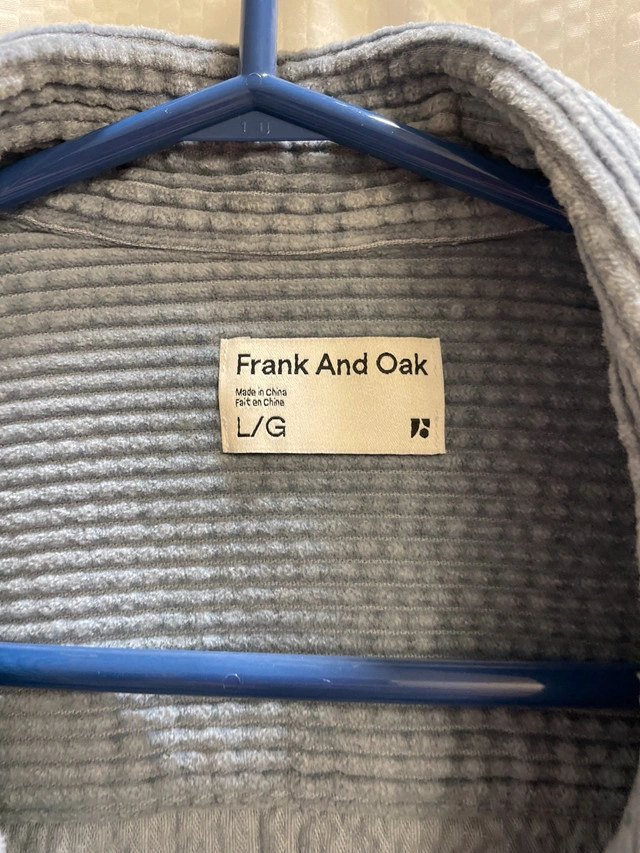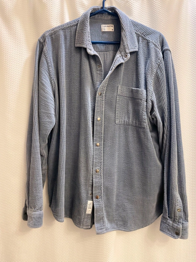 Elevate your casual wardrobe with this stylish, used Frank And Oak corduroy shirt, crafted from comfortable and durable corduroy fabric, perfect for layering or wearing on its own. Key Features: - Brand: Frank And Oak - Fabric: Corduroy - Size: Large Looking to add a touch of relaxed sophistication to your closet? This shirt is waiting for its next adventure. And yes, if you're seeing this ad, it's still available!