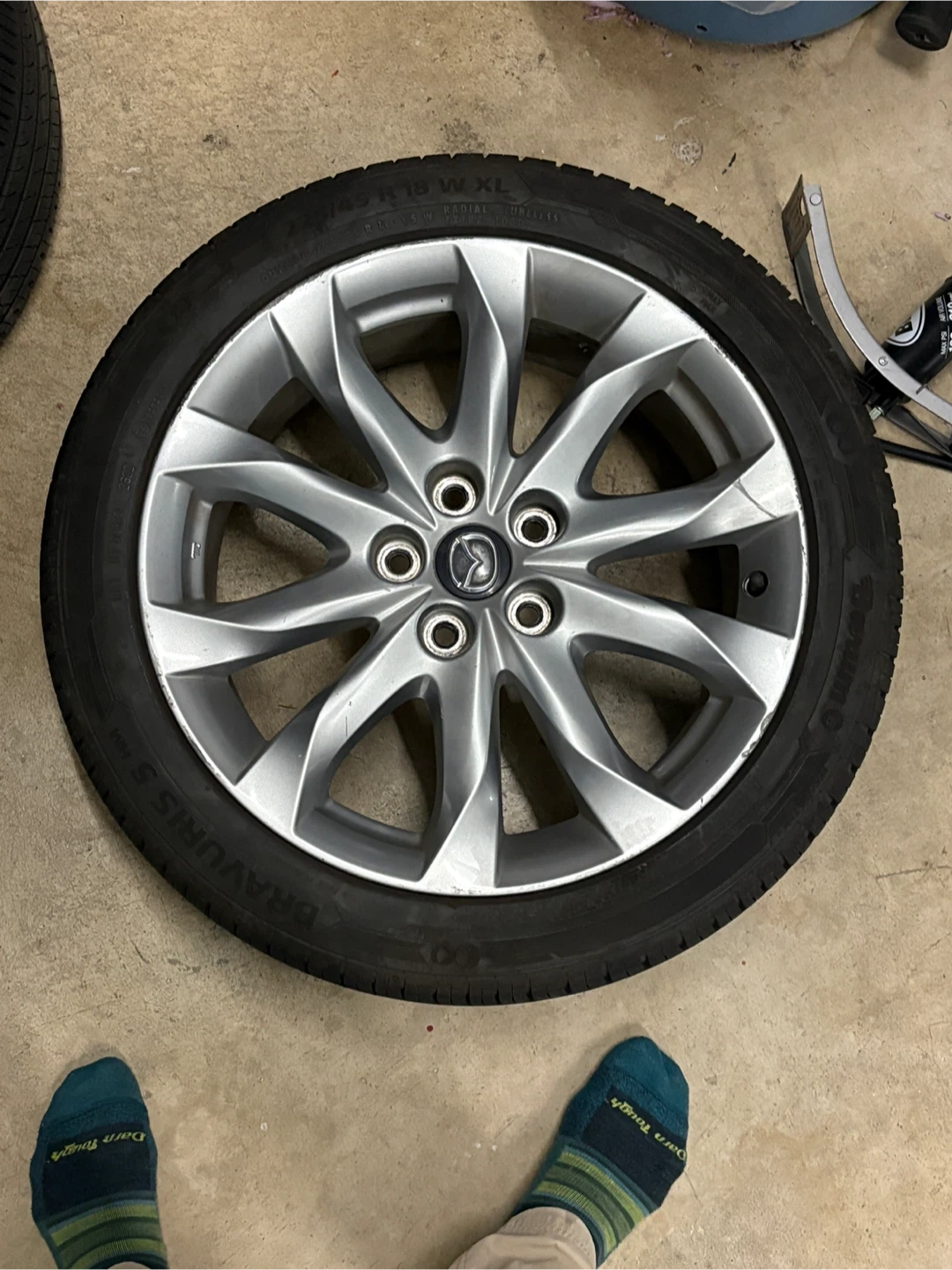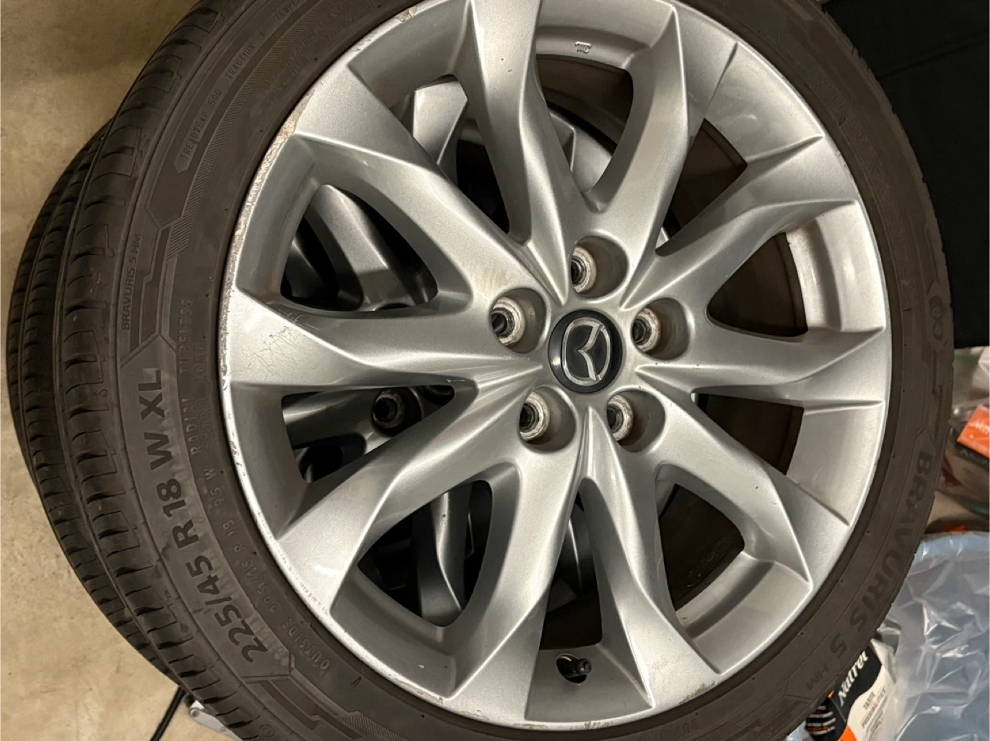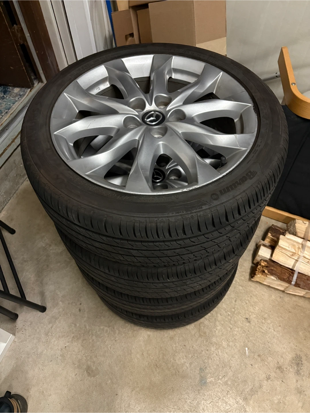 Selling a set of four Mazda rims and tires. They are in good condition and ready to be used. They are Bravuris 5HM All Season tires. They came off a 2015 Mazda 3.