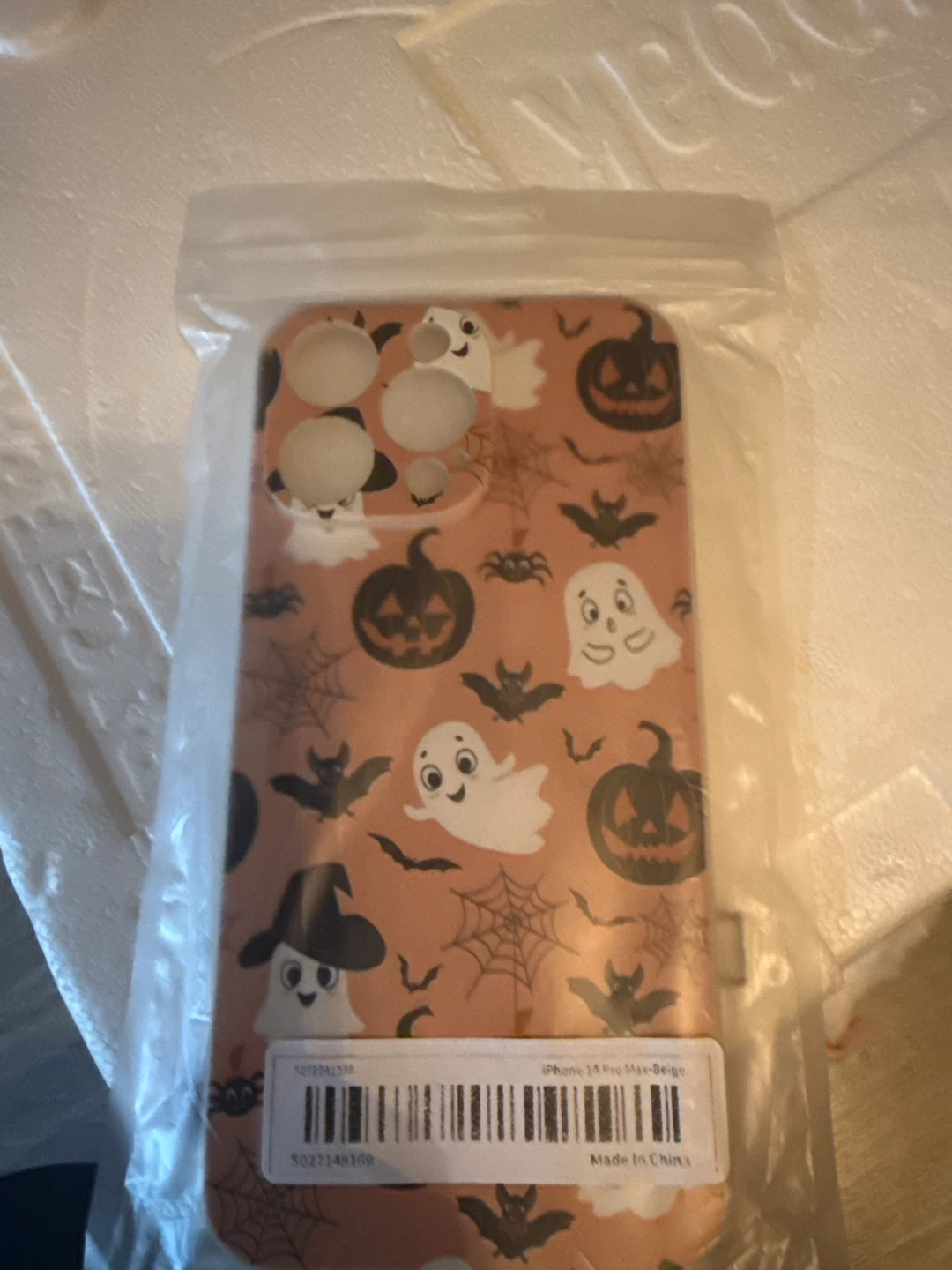 Brand new iPhone 14 Pro Max case with a cute Halloween design! It features ghosts, pumpkins, bats, and spiderwebs on a beige background. Never used and still in its original packaging.
