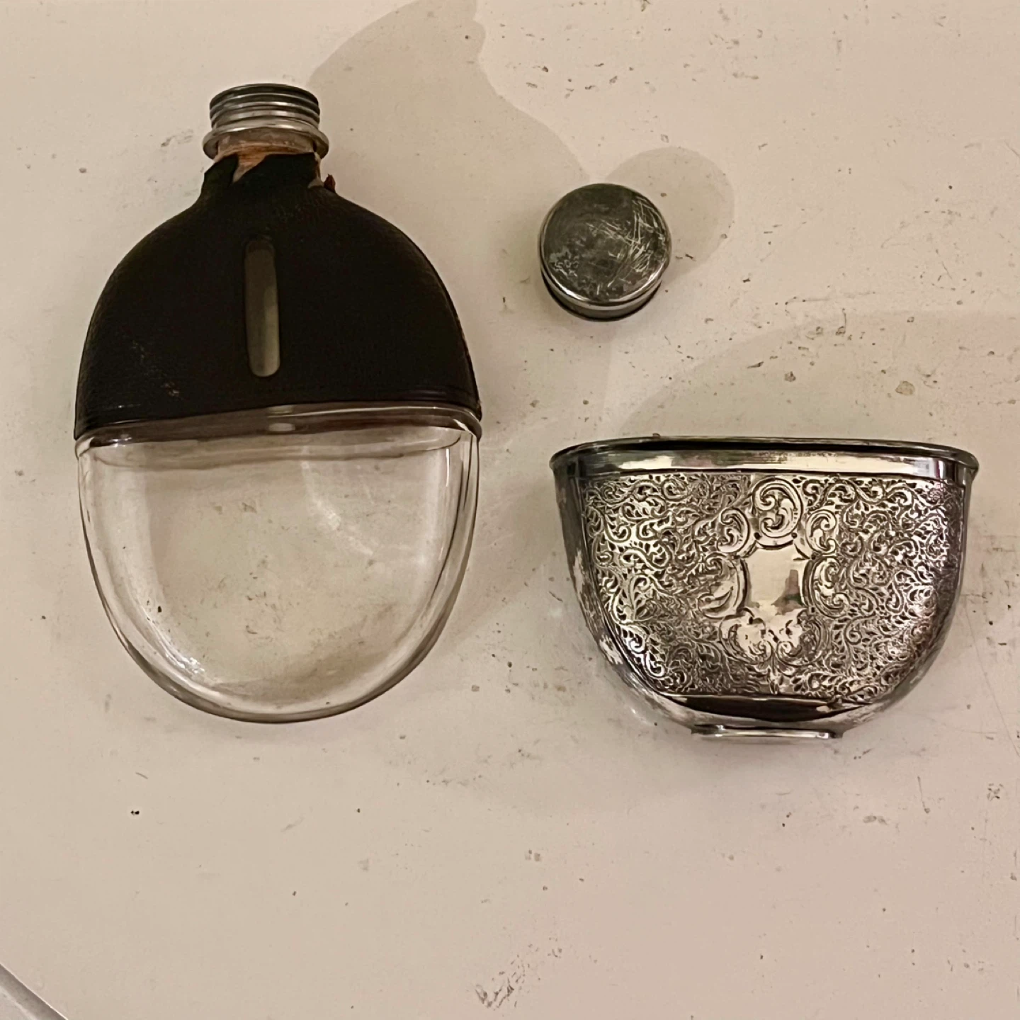 Victorian Silver Plated & Leather Hip Flask & Stirrup Cup