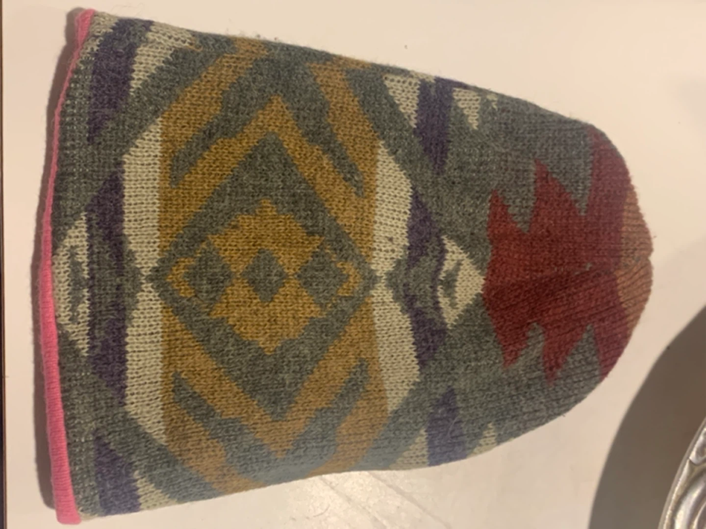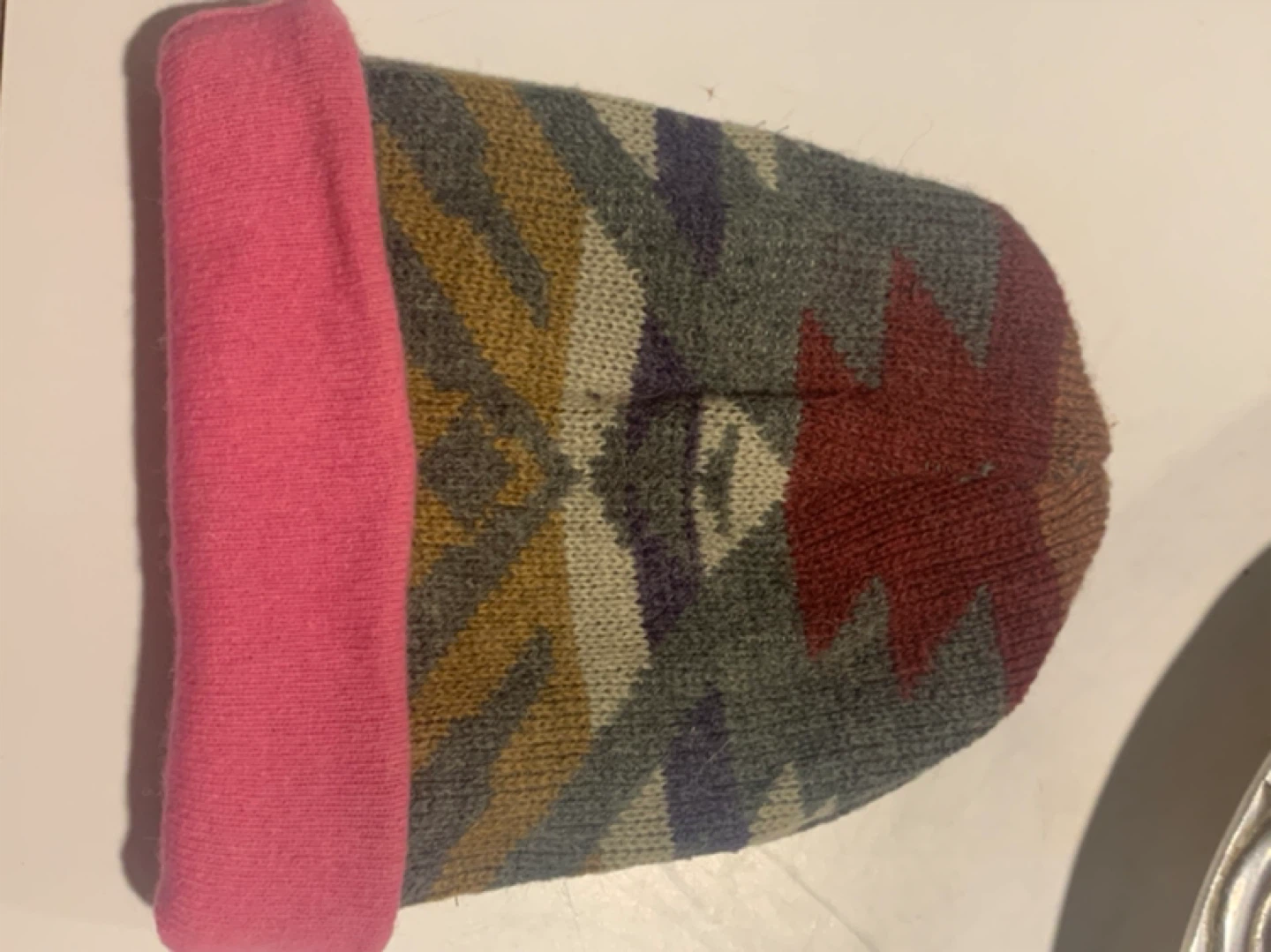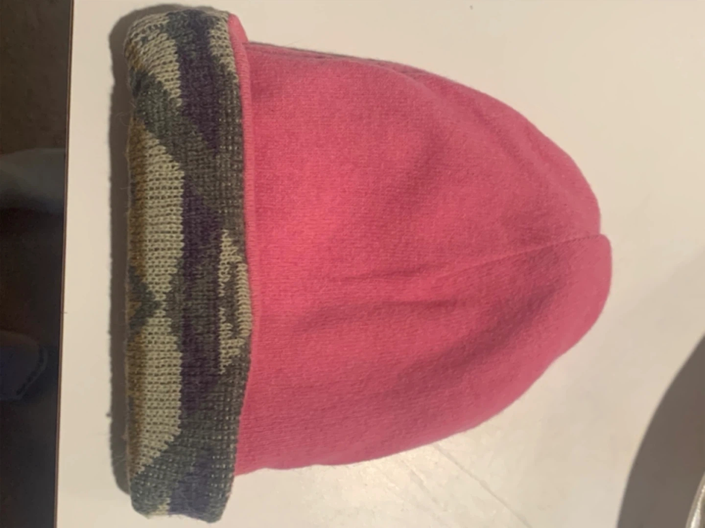 Selling a reversible hat. One side is pink and the other side is patterned. There is a flower logo on the patterned side of the hat. paid $65 and worn once last year .