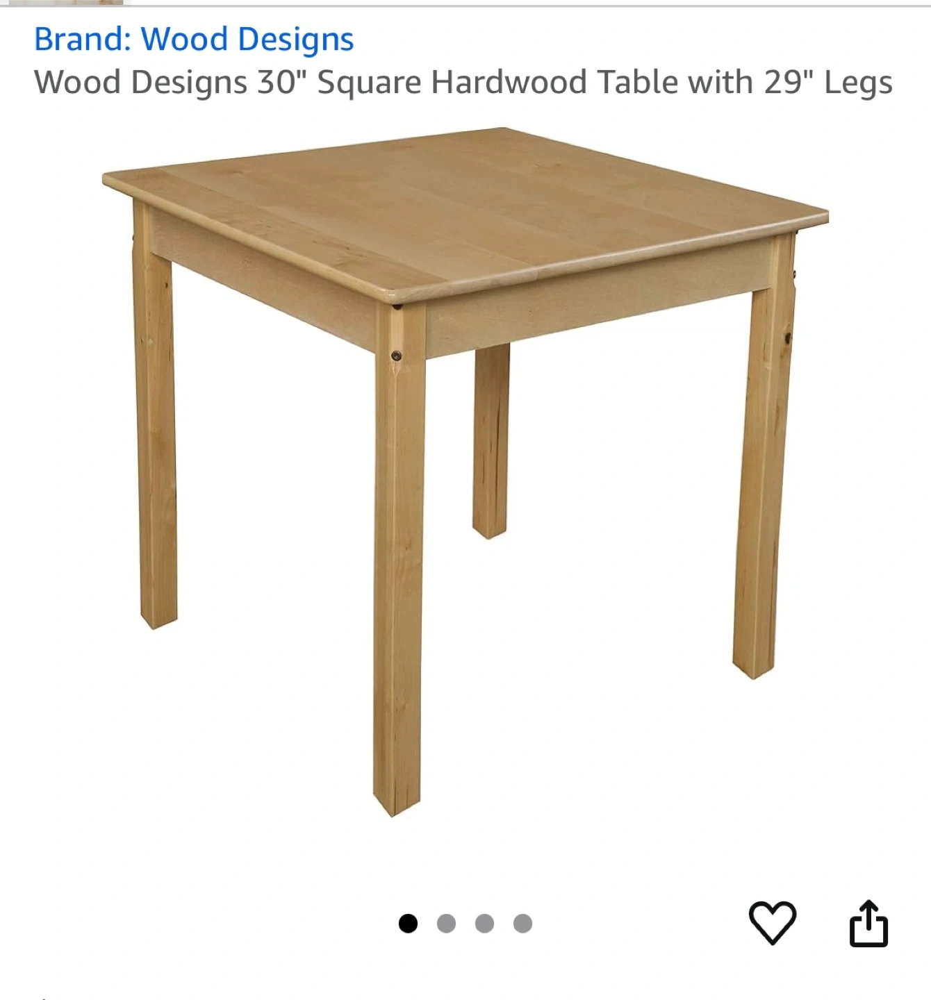 Selling a cute kids' table and chair set from Wood Designs. The table is a 24” square hardwood table with 27”legs. Perfect for arts and crafts, snack time, or homework!