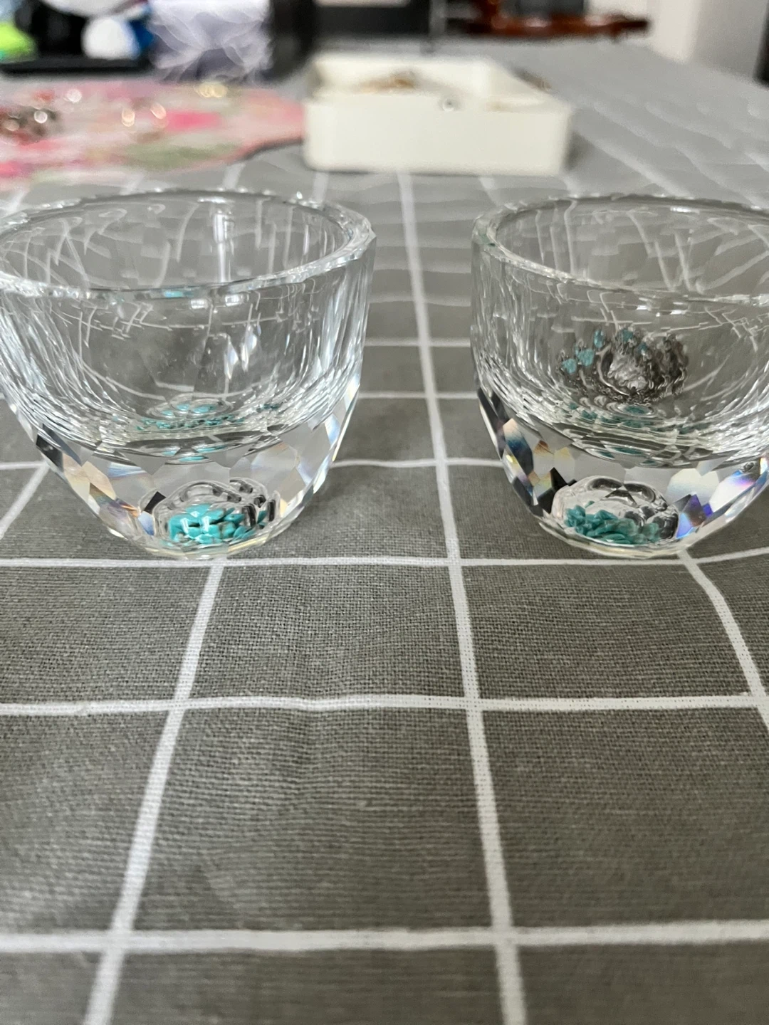 Clear Glass Cup with Turquoise Stones