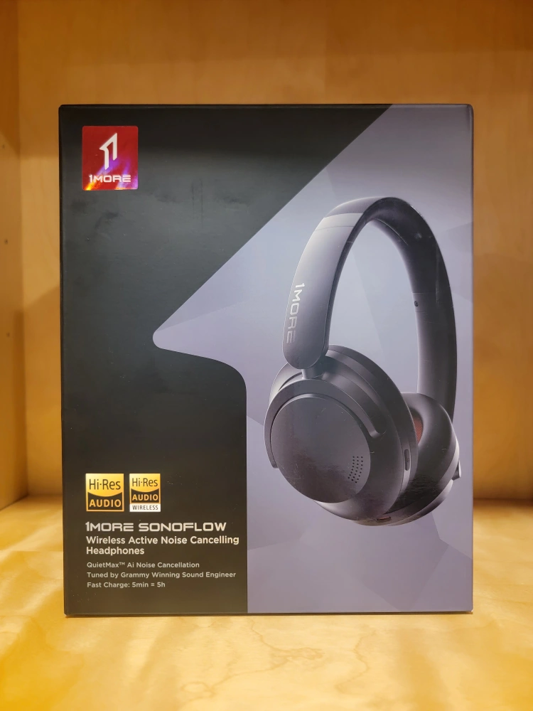1more sonoflow anc wireless headphones. Can be used wired or with bluetooth. Box includes headphones, carry case, auxiliary cable and charging cable.