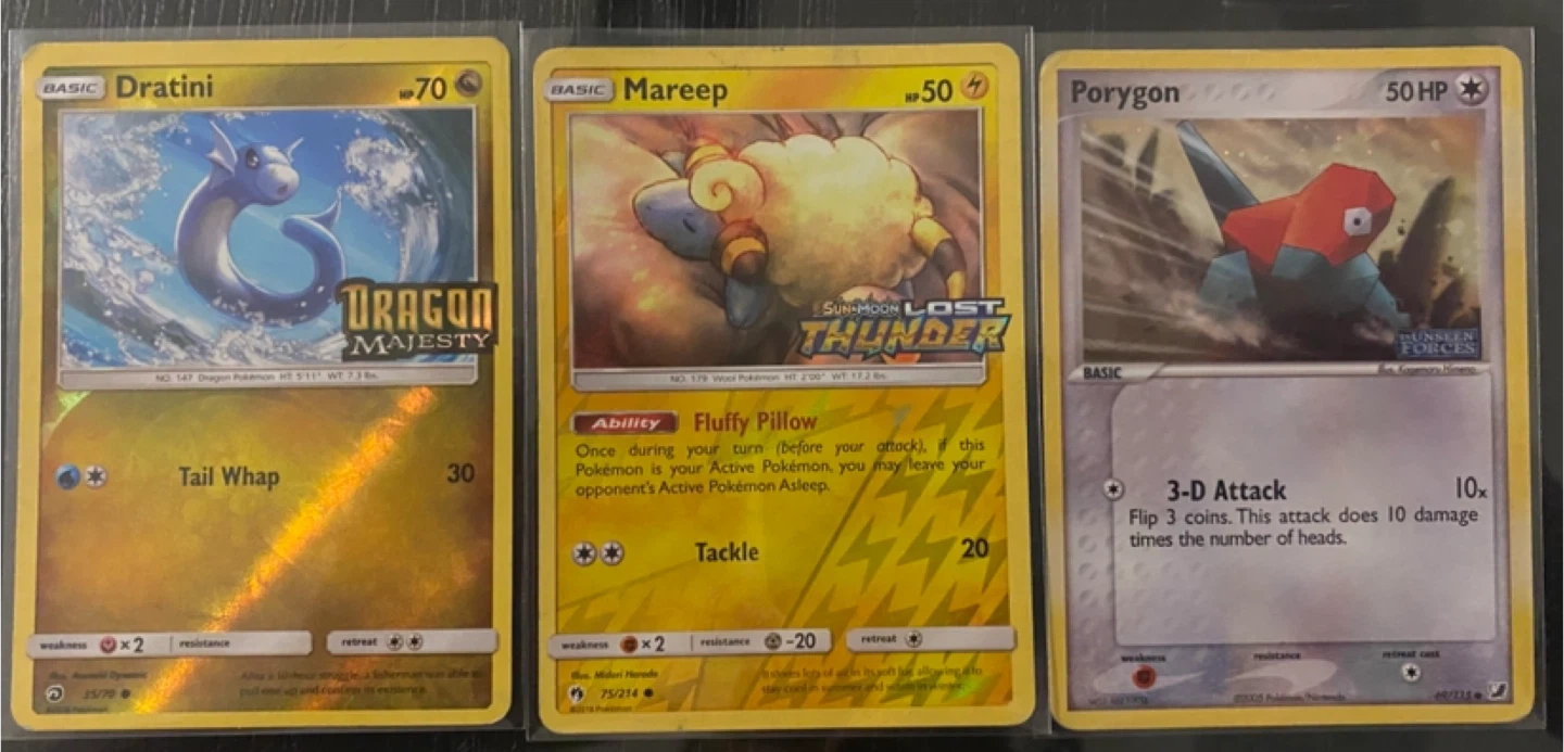 Pokémon Cards: Dratini, Mareep, Porygon