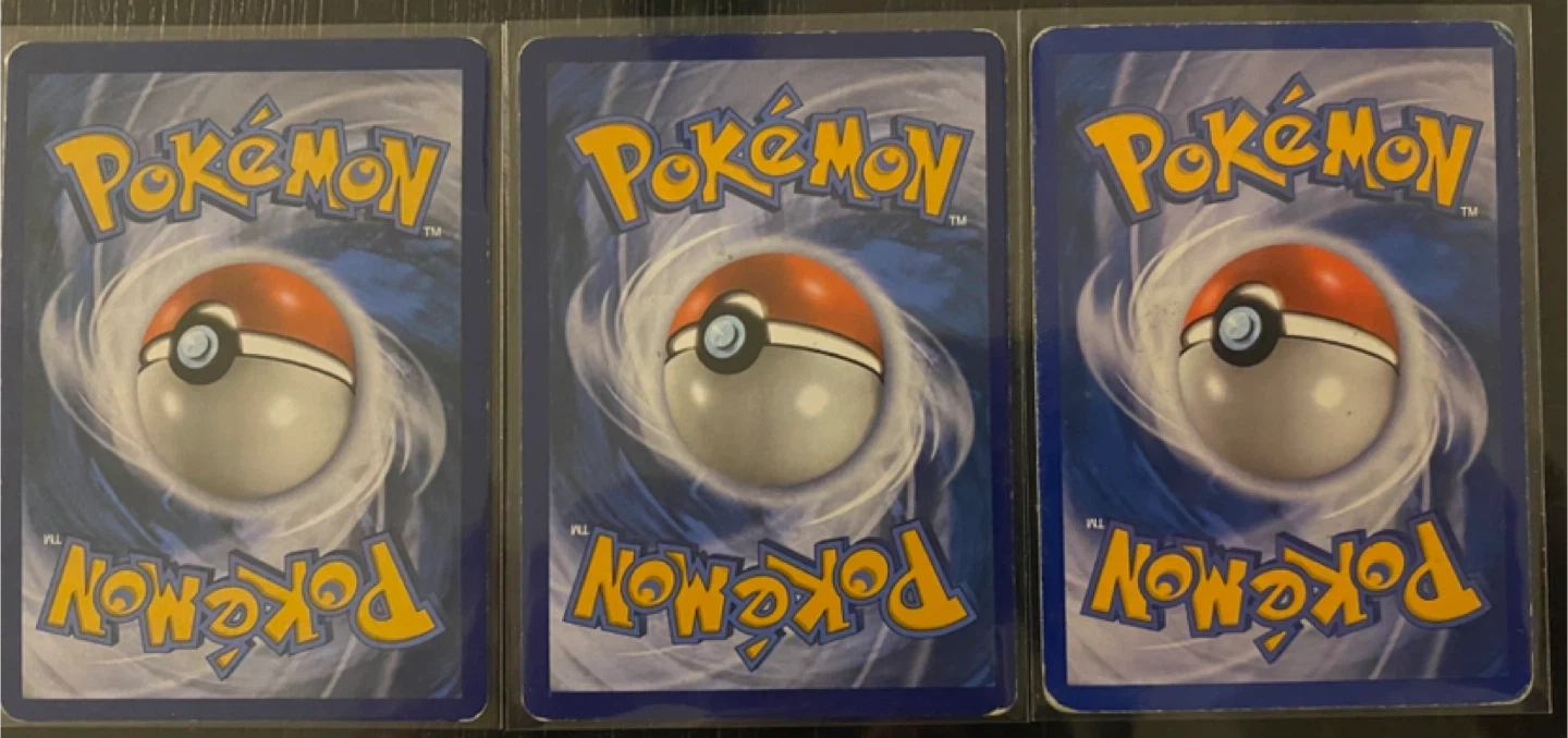 Here is a set of three vintage stamped Pokemon cards. These cards have been handled, but are in good condition. See images for details.