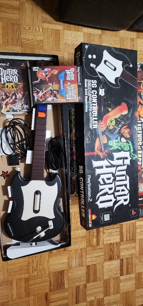 Selling a Guitar Hero SG Controller for PlayStation 2! Comes with the original box and two Guitar Hero games. Ready to rock!