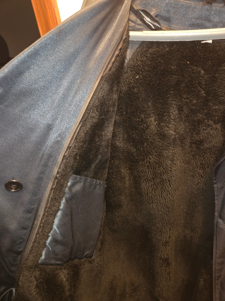 There are radio loops/mic tabs on both sides at breast (crossing guards wore thier badges here) It has a removable zip-out full length faux fur inner liner w/inside pockets. Also, a removable zip/snap & button off faux fur collar.