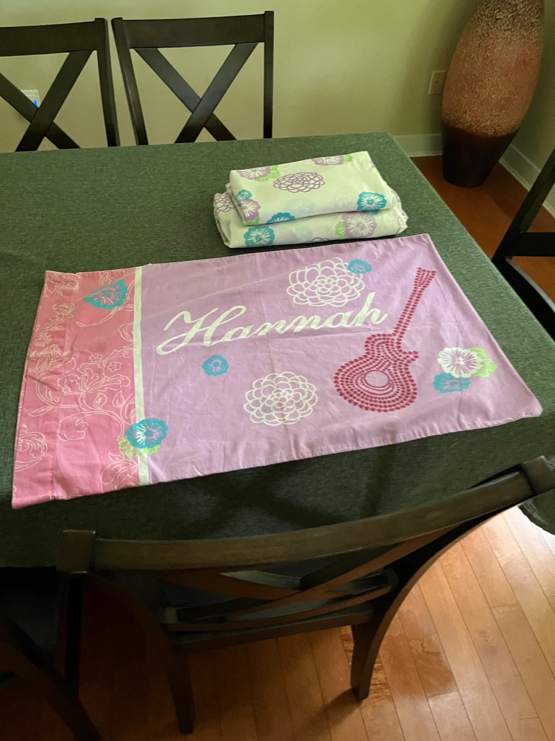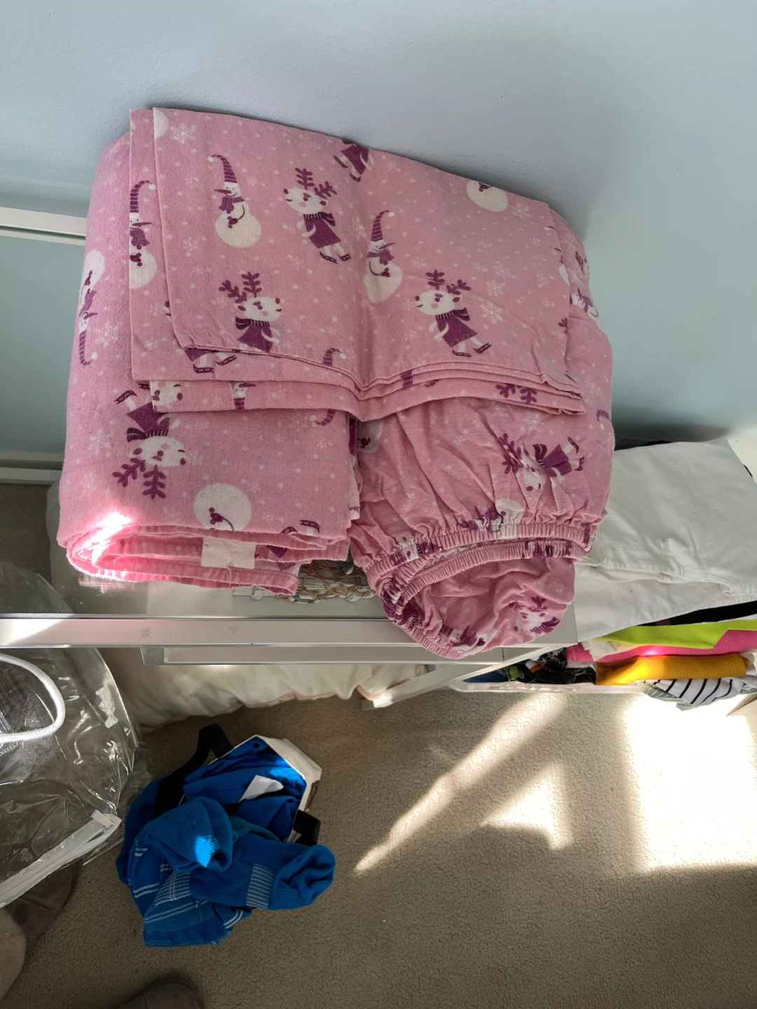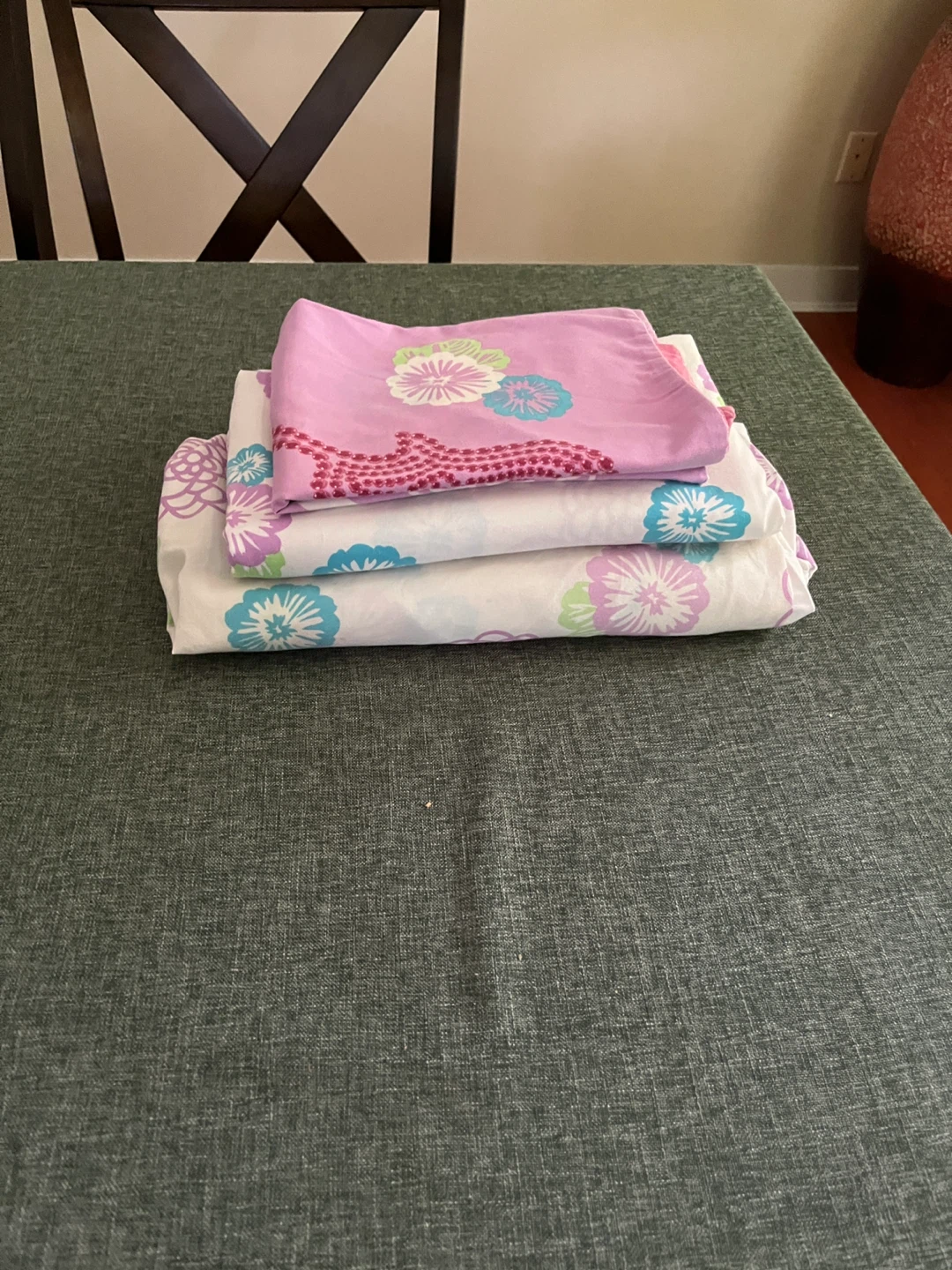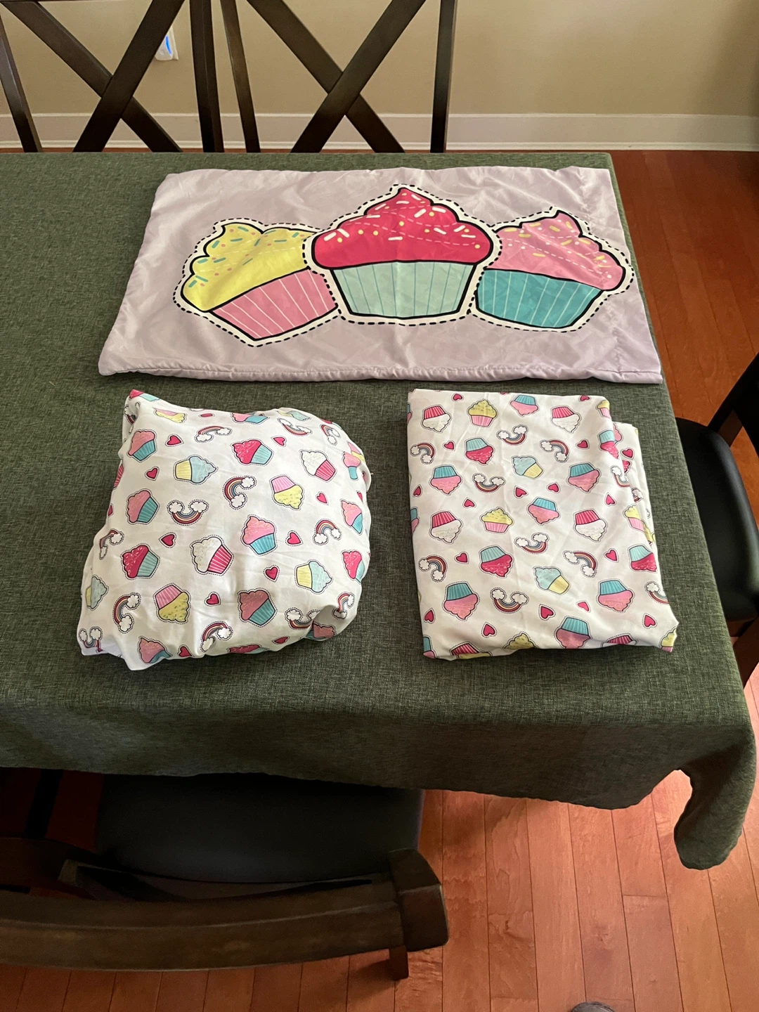 Selling a kids bedding set. It features colourful and fun designs that would look great in any child's room. Perfect for adding a touch of whimsy to their sleep space!
