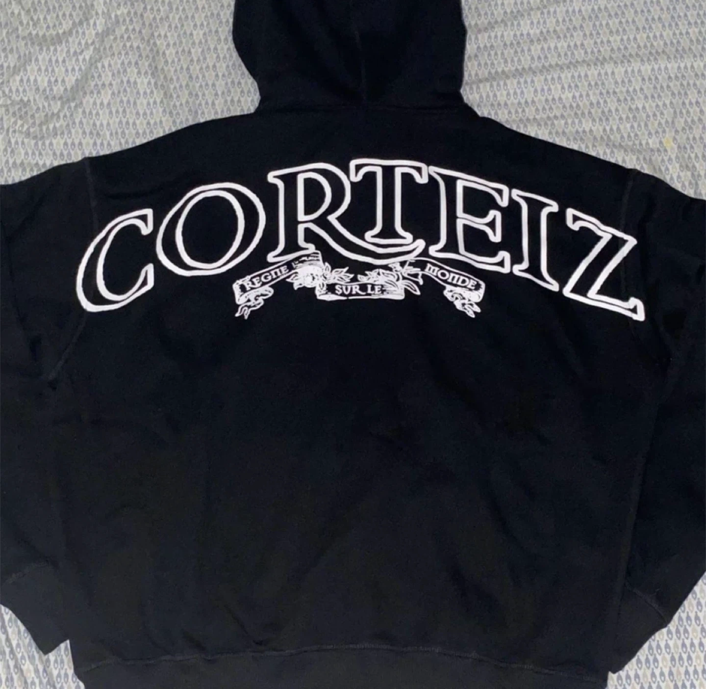 Selling a Corteiz hoodie and sweatpants set in black. The hoodie has a large Corteiz logo on the back and a smaller logo on the front. The sweatpants also feature the Corteiz logo down the side. Great for casual wear! BRAND NEW (If you need another size lmk. that can be arranged) IF INTERESTED PLEASE DM ME BEFORE BUYING I CAN ONLY SHIP IN THE MOMENT ✨HMU FOR ANY OTHER MODEL/COLOR ✨ (Have a lot of clothing in stock. Check out my website if interested)