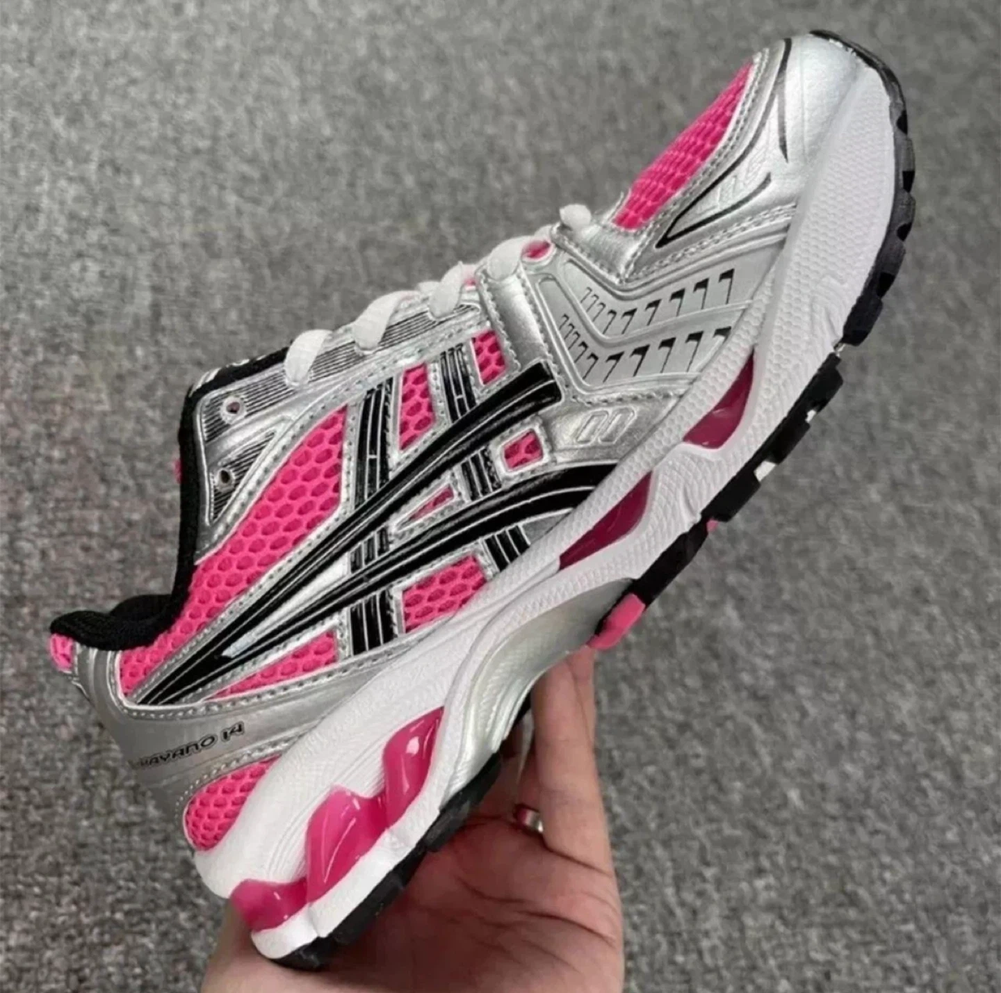 Selling a pair of Asics Gel-Kayano 14 sneakers in a striking pink and silver colorway! These shoes are in great condition and come with the original box. Perfect for running or everyday wear, they offer excellent support and cushioning. Grab these stylish and comfortable sneakers today BRAND NEW (If you need another size lmk. that can be arranged) IF INTERESTED PLEASE DM ME BEFORE BUYING I CAN ONLY SHIP IN THE MOMENT ✨HMU FOR ANY OTHER SHOE ✨ (lowkey lazy to post all my other shoes)