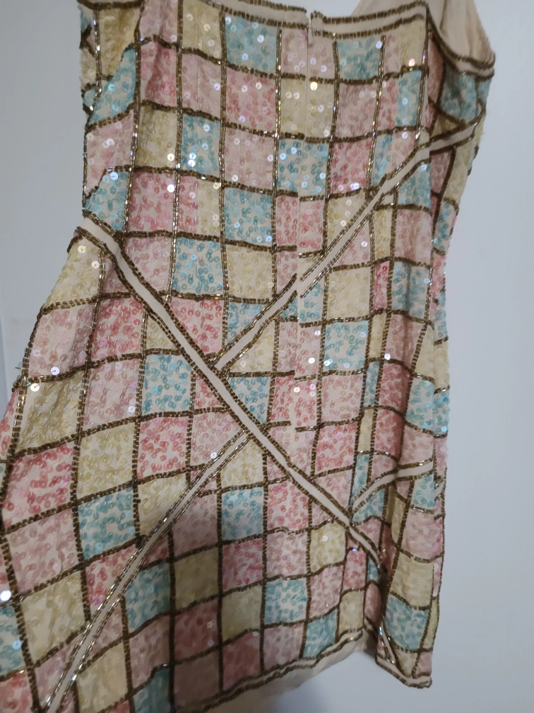 ๐It features a fun and colourful patchwork design with sequins, perfect for a night out or special occasion.