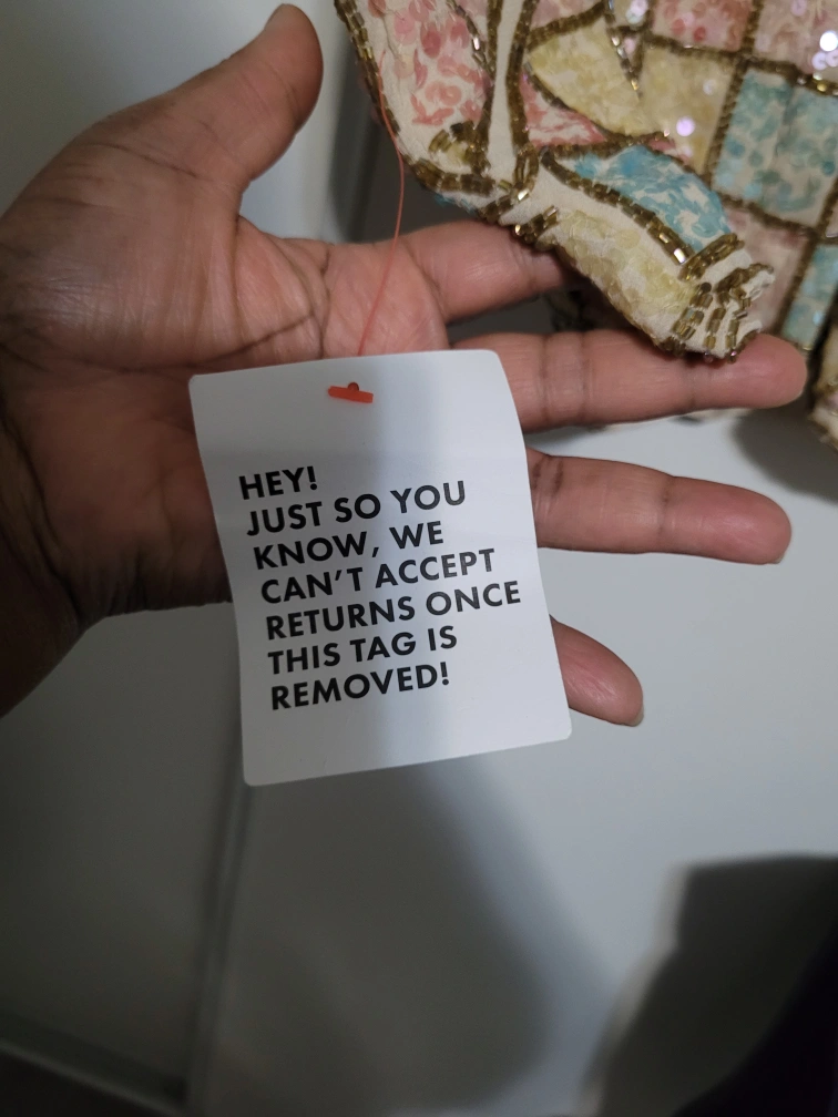 ๐The dress still has its original tags attached.