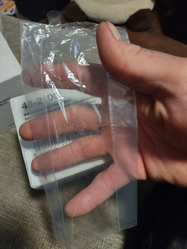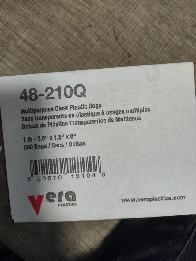 I have three boxes of 1lb bags; measurements are 3.5"x 1.5"x8". Selling by the box, 500 bags in each box. Each box is sealed, never opened, asking $15 each box. Let me know. Thank you