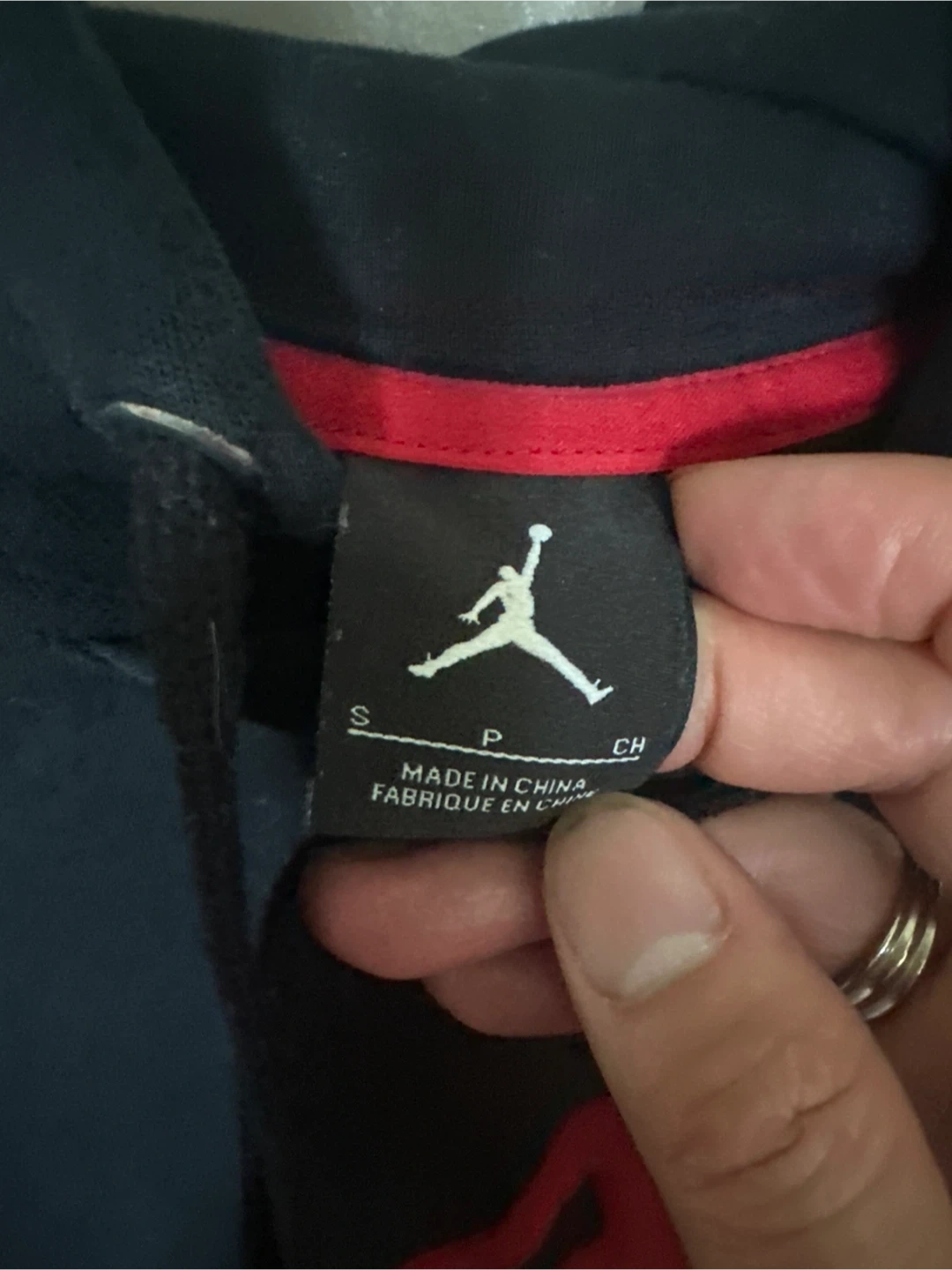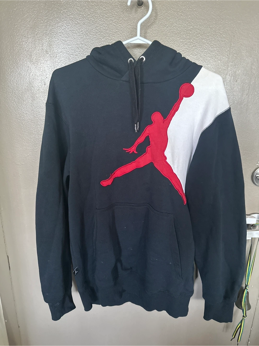 Selling a Jordan hoodie in size small. It's black with a red and white design on the front. Great for casual wear!