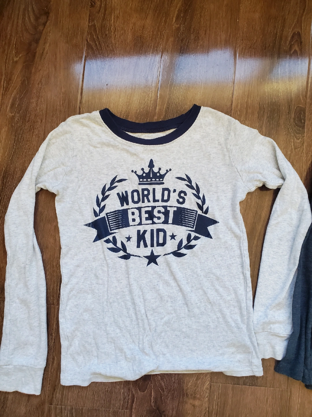 One is grey with a football design, and the other is white with a navy blue trim and a 'World's Best Kid' graphic