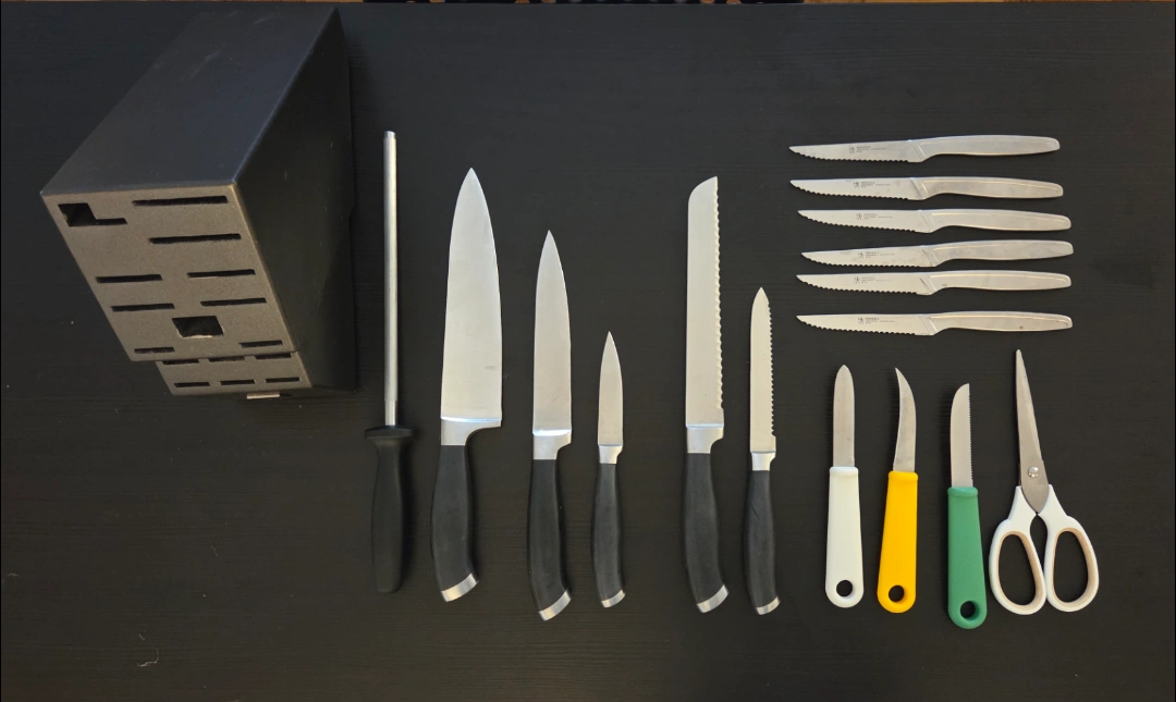 Selling a Zwilling J.A. Henckels knife set. It includes a variety of knives and a knife block to store them in. Great for any kitchen!