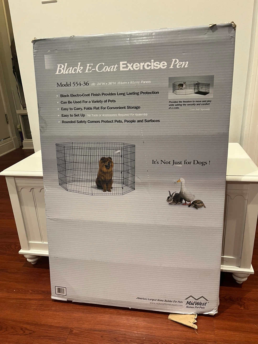 It's easy to carry and folds flat for convenient storage. The rounded safety corners protect your pets, people, and surfaces. The pen measures 24"W x 36"H (61cm x 91cm).