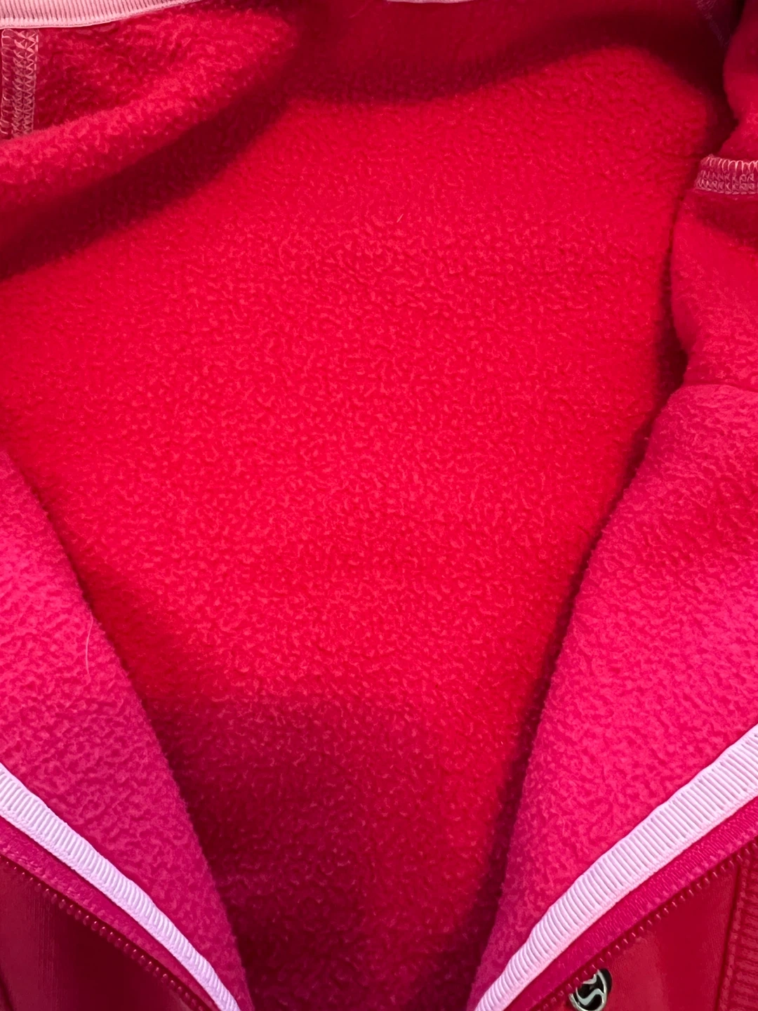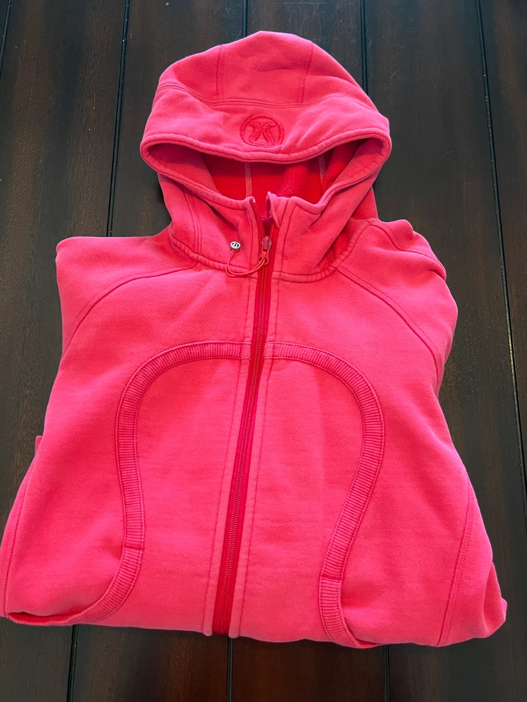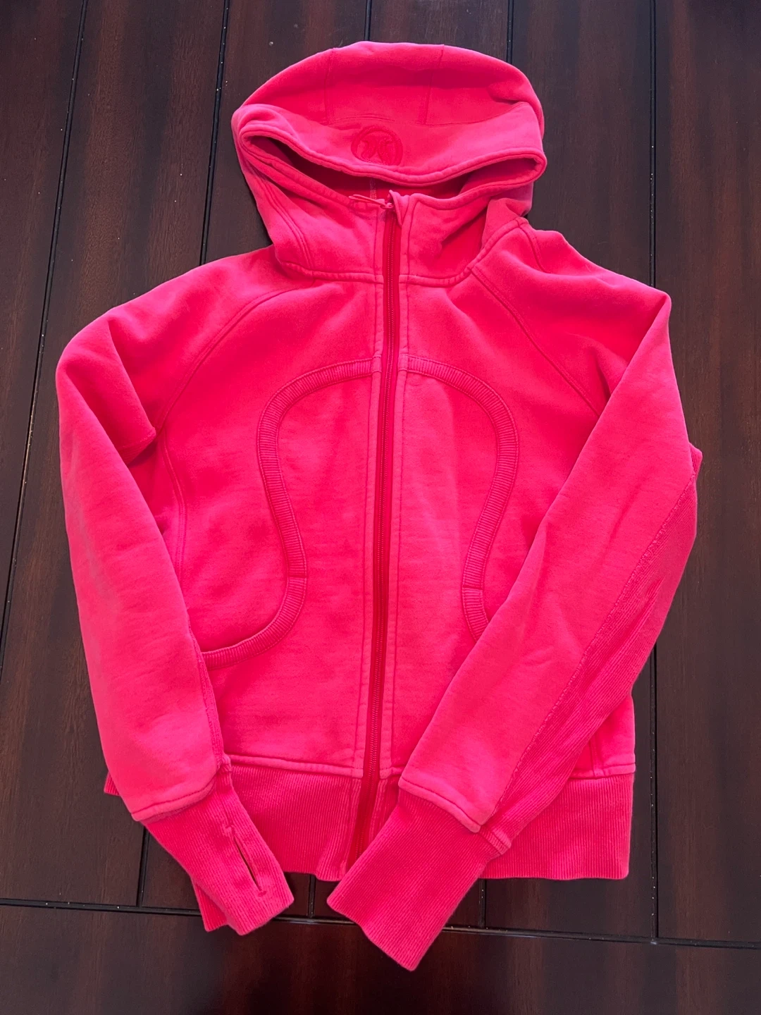 Selling a Lululemon Scuba Hoodie in a vibrant pink colour! It's a size 10 and features the classic Scuba design with a full zip and hood. Perfect for layering or wearing on its own for a cozy and stylish look. This is an older style that has much less stretch. Condition is well loved hence the price. It’s not damaged, just well worn.
