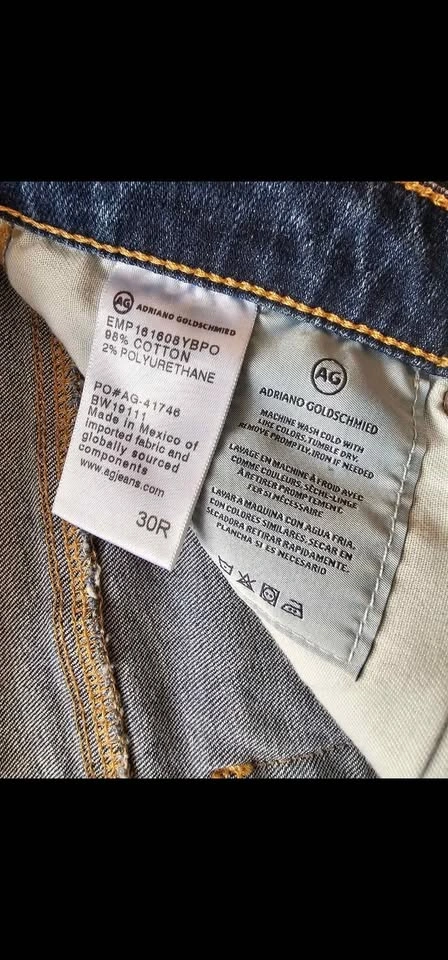 Jeans are a size 30R and are in new condition. Waist measures about 16", front rise measures about 9.5", and inseam measures about 32". Retail value $400. Made of 98% cotton and 2% polyurethane for stretch and comfort.