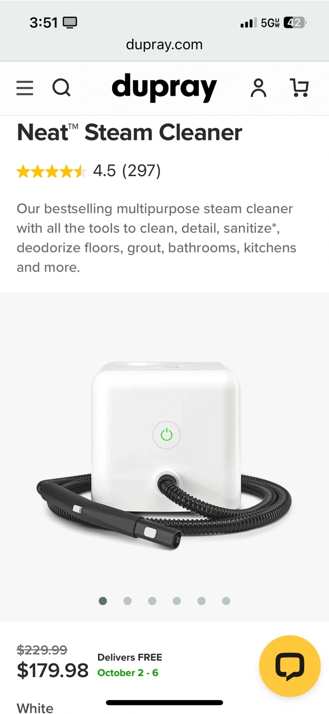 I'm selling a Dupray Neat Steam Cleaner in white. It's a multipurpose steam cleaner perfect for cleaning, detailing, sanitizing, and deodorizing floors, grout, bathrooms, kitchens, and more! Originally bought for $200+