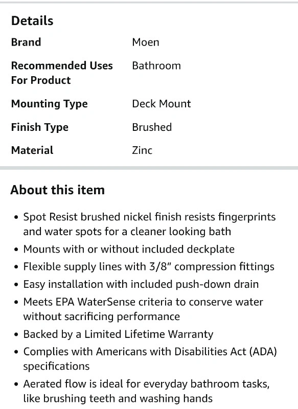Brand new Moen LISO Spot Resist Brushed Nickel One-Handle Bathroom Faucet, One Hole Bathroom Sink Faucet with Optional Deck Plate and Push Down Drain, 84540SRN. Asking $120. Let me know if you're interested! Cash and cashless payments accepted.