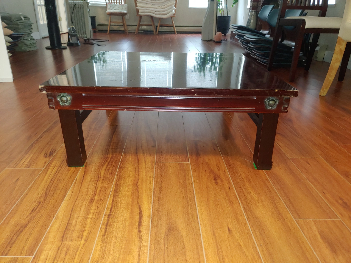 Selling two folding kotatsu tables in a dark brown finish. It's a great space saver and perfect for cozy evenings. The table shows some signs of use, but it's still in good condition. It folds easily for storage when not in use. $40 each