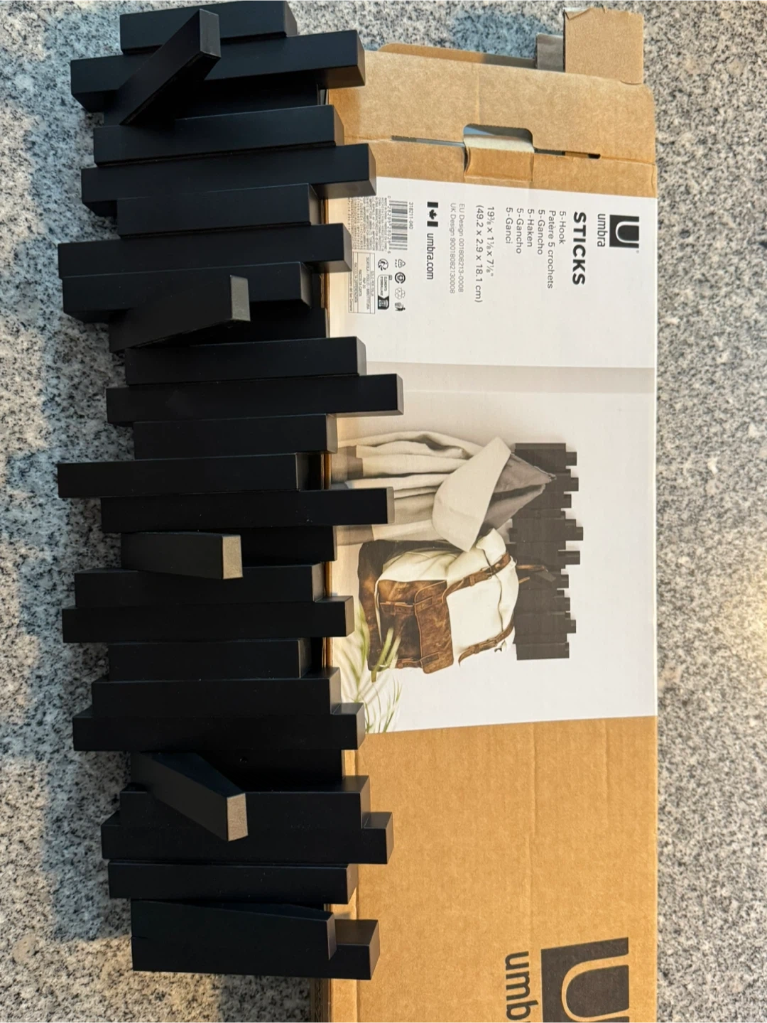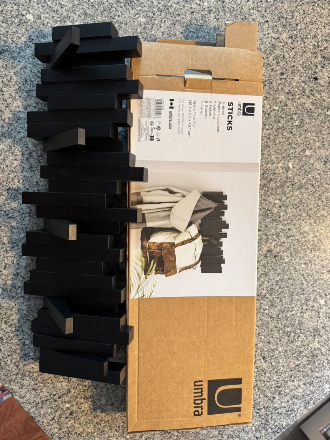 Selling an Umbra Sticks 5-Hook in black. It's a stylish and functional way to add some hanging storage to your space. New in box.