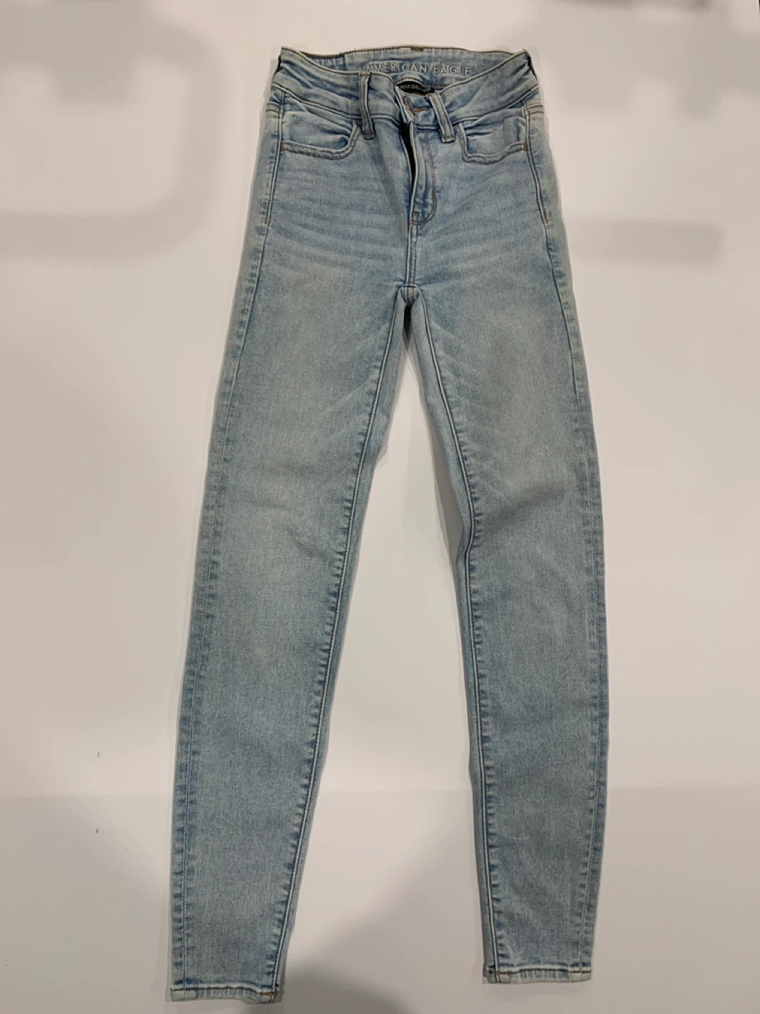 Selling a pair of American Eagle light wash skinny jeans in size 2. They're in great condition and ready for a new home!