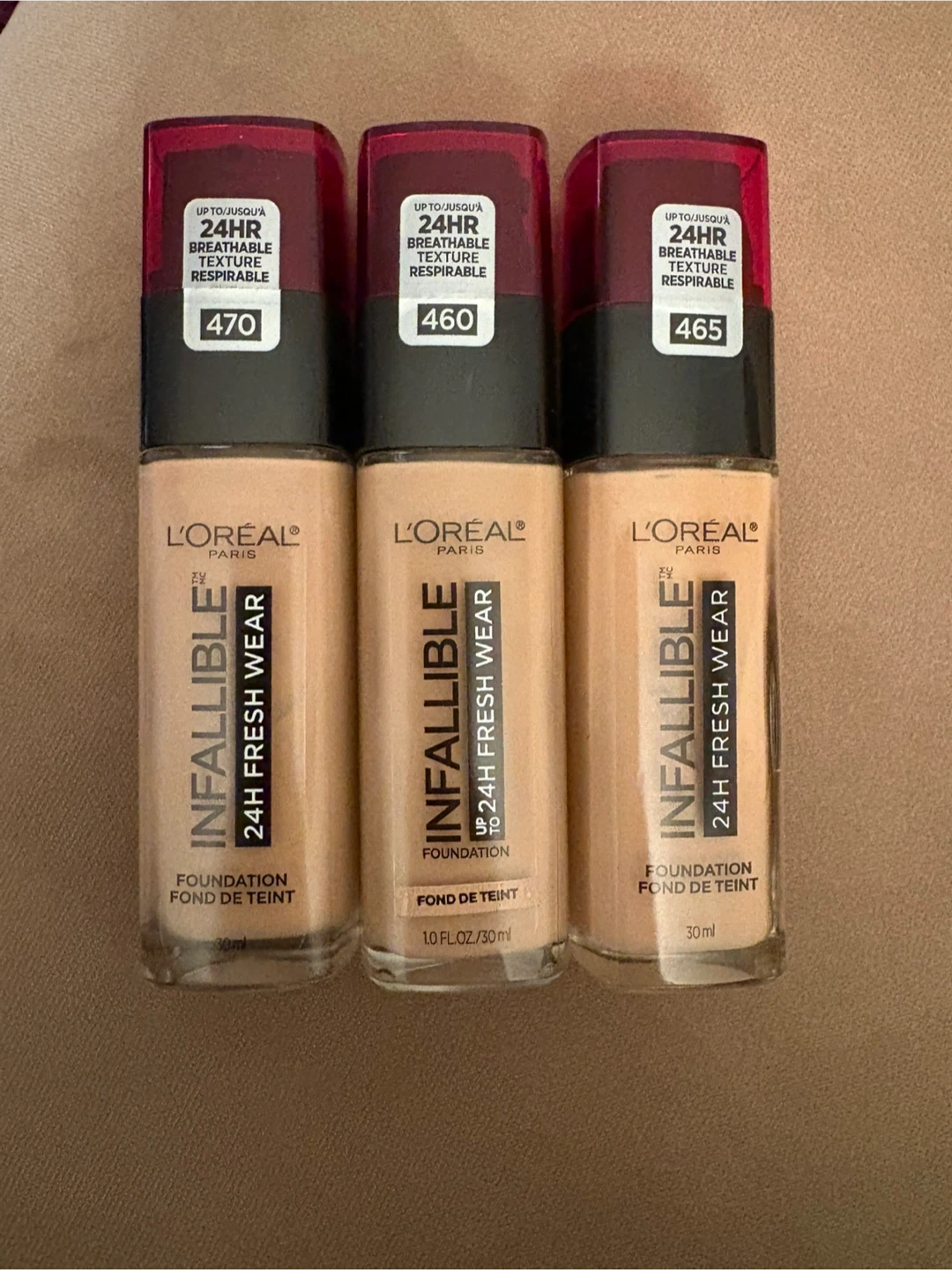 Selling L'Oreal Infallible 24H Fresh Wear Foundation in shades 470, 460 (SOLD), and 465.