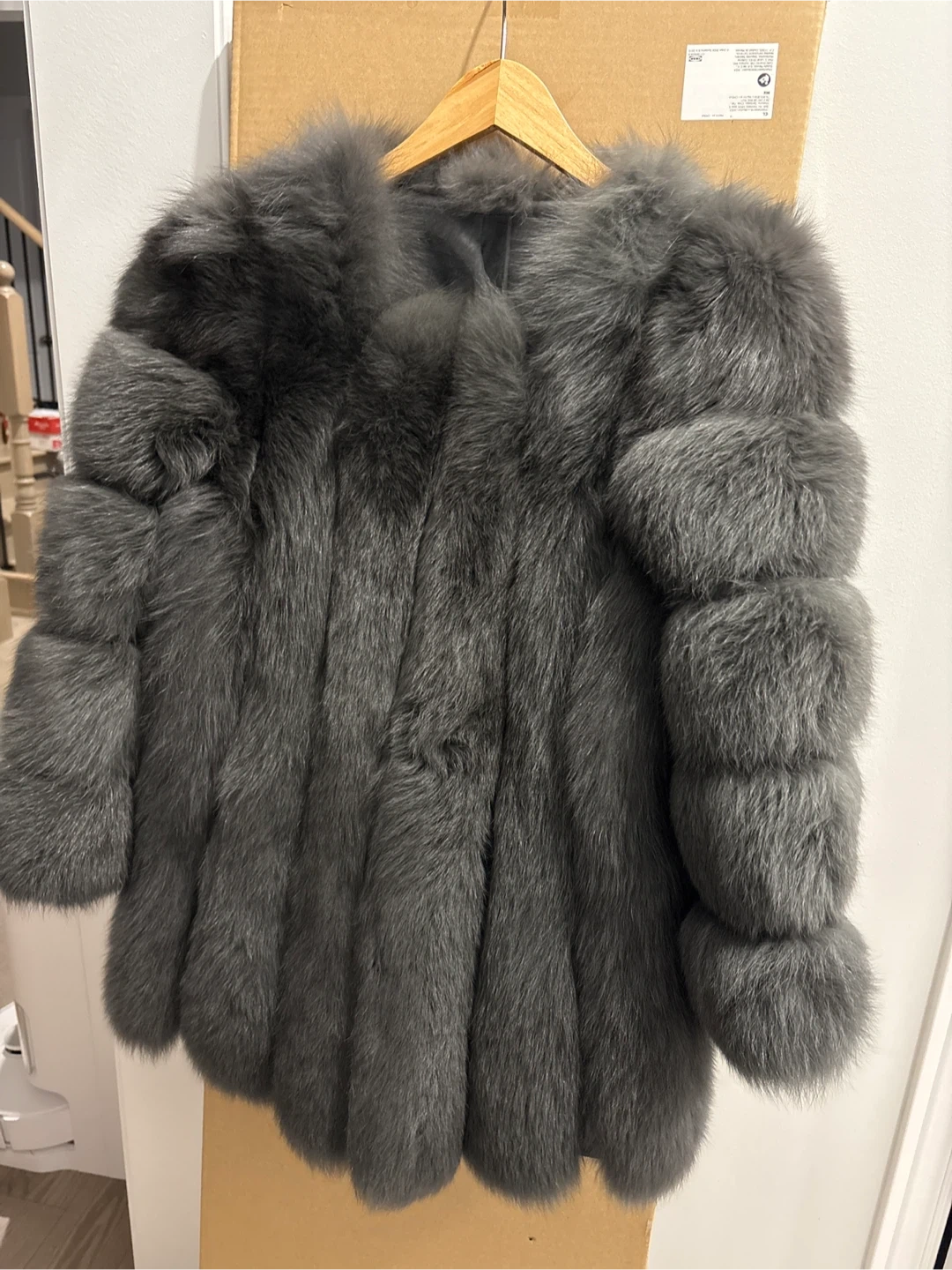 Selling a lovely real grey fox fur coat in size L. It's in great condition and ready to keep you warm and stylish this winter! The material is soft and luxurious, perfect for adding a touch of elegance to any outfit