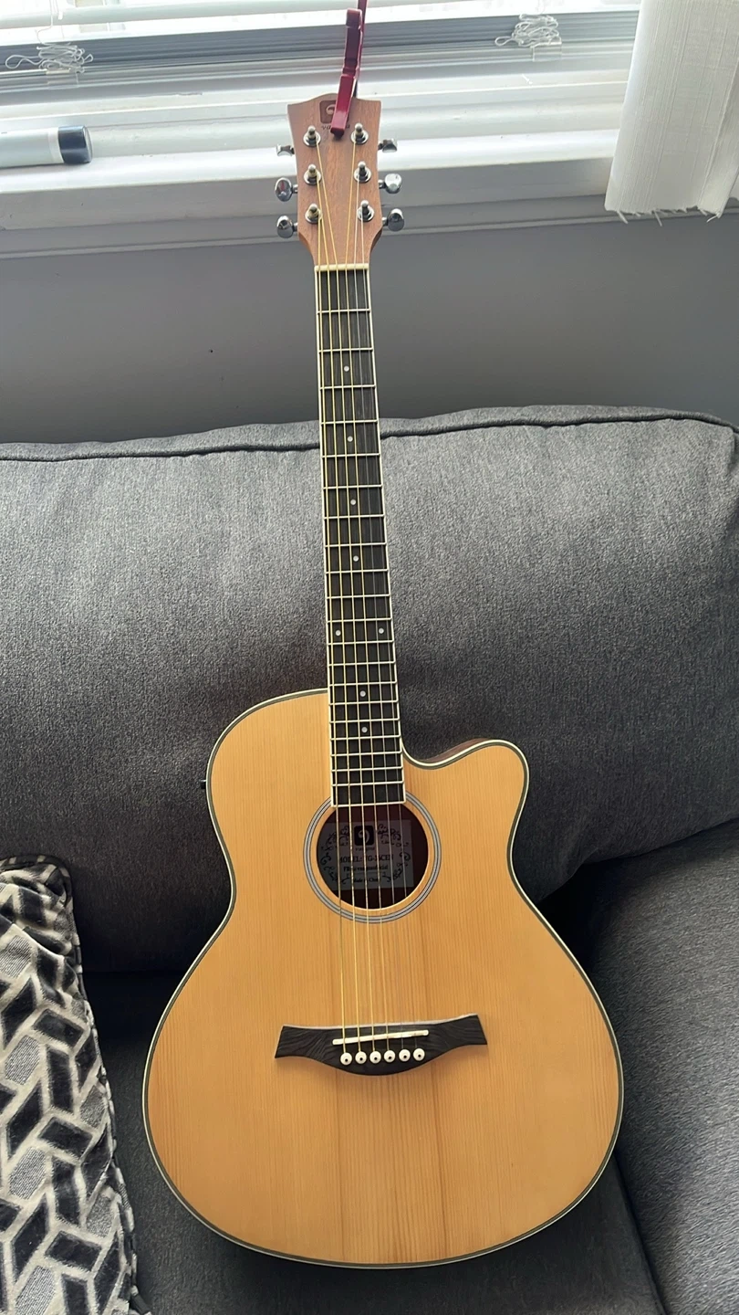Selling a mint condition electric acoustic guitar, has a built in tuner and electronics for connecting to amp. Guitar is 3/4 size, nice action. Ready to play! Brand new condition, beautiful guitar with a matte finish. Thanks for looking