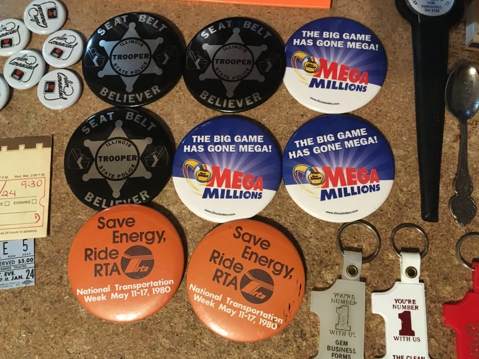 3x Lottery Numbers Mega Millions Illinois pinback buttons
